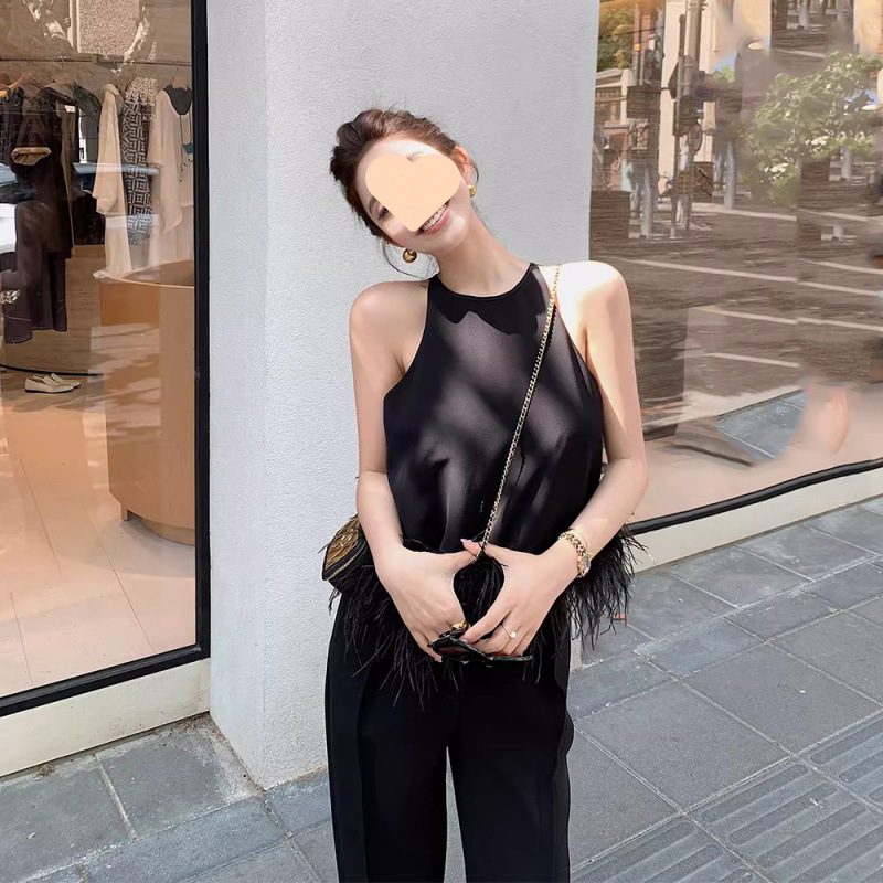 2025 새로운 패션 우아한 경량 틈새 스티칭 민소매 스트랩 탑 바지 세트 투피스 세트스토어 가기