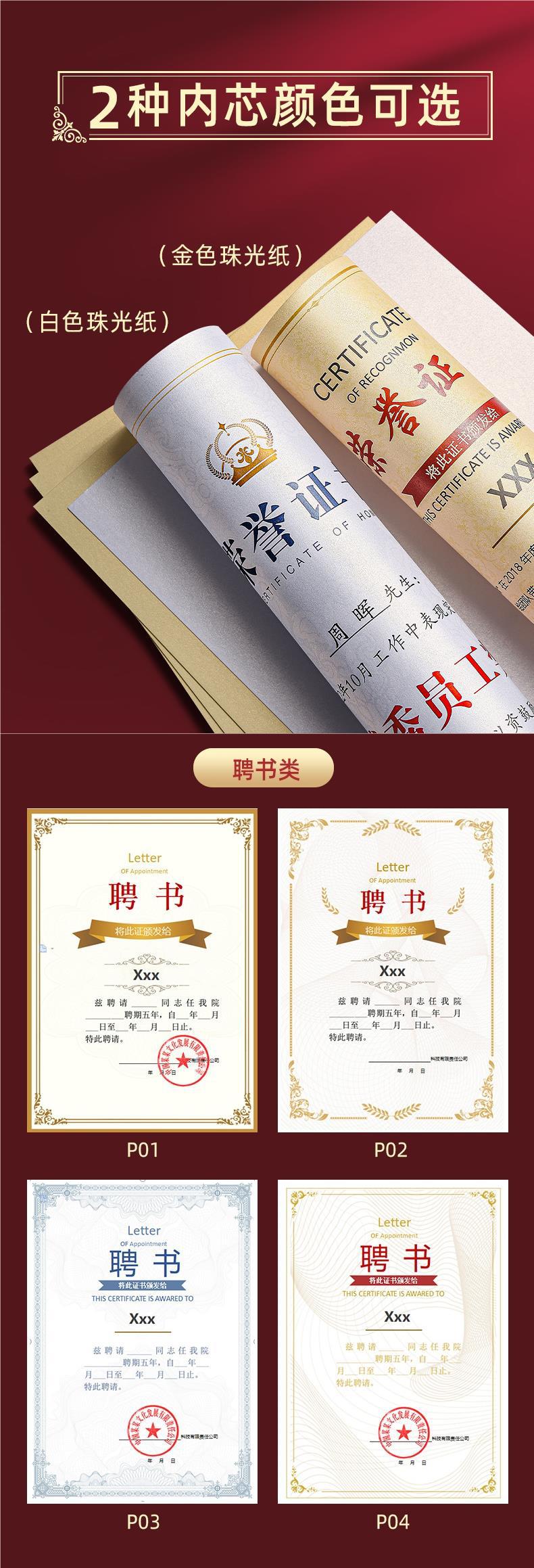 • 명예 증서 1세트(두꺼운 270g 금빛 진주빛 내부 페이지 포함)-A4(내부 페이지 크기: 210*297mm)