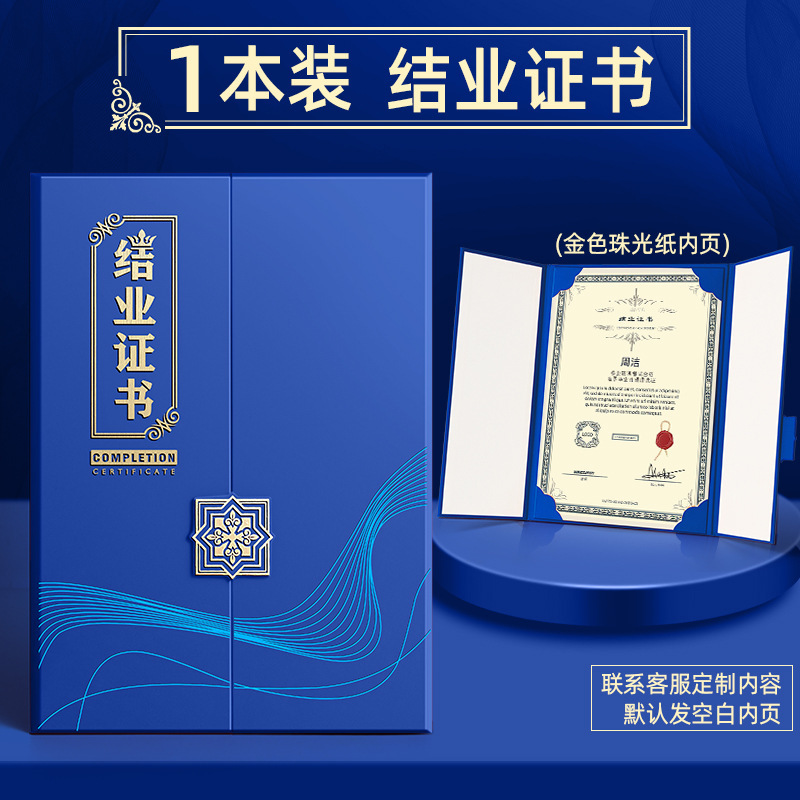 • 명예 증서 블루 1팩(두꺼운 270g 아이스 화이트 진주빛 내부 페이지 포함)-A4(내부 페이지 크기: 210*297mm)
