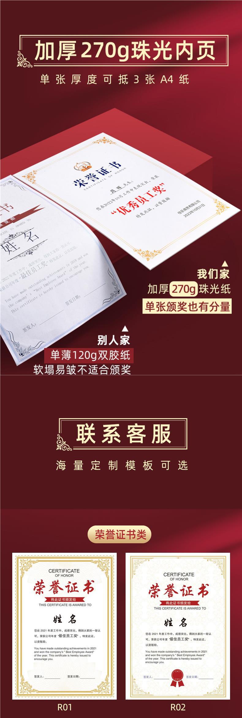 명예 훈장 증명서 표창 쉘 상 내부 페이지 인쇄 코어 커버 직원 공로 증명서스토어 가기