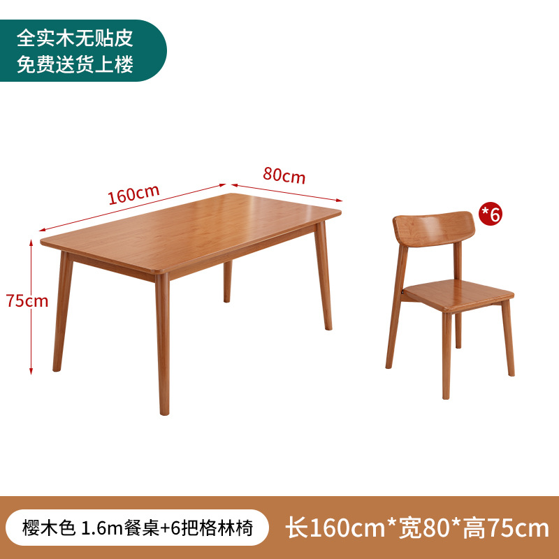 모든 단단한 나무 식탁 홈 작은 아파트 식탁 및 의자 조합 현대 간단한 직사각형 테이블 임대 방