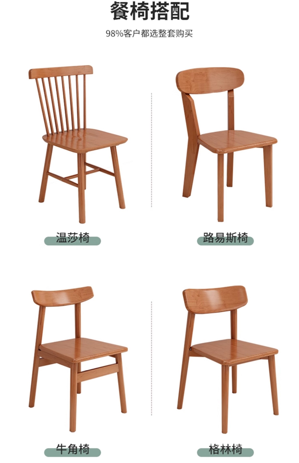 • 로그 컬러 130*80 싱글 테이블 + Windsor 의자*6(모든 원목, 베니어 없음)