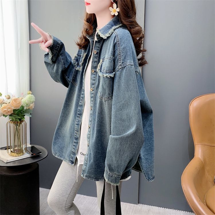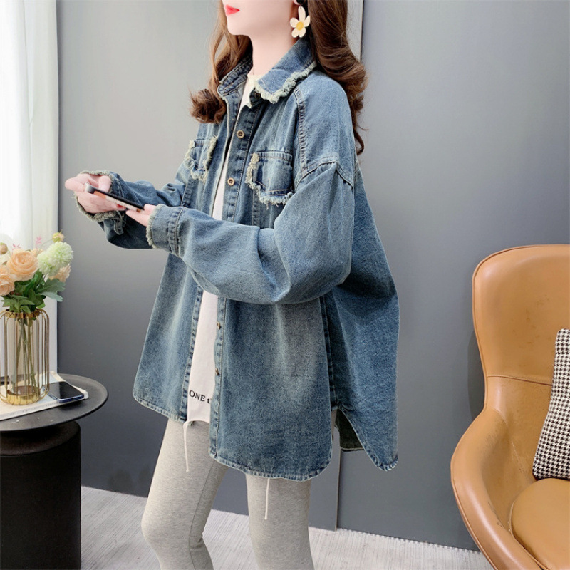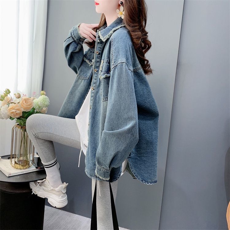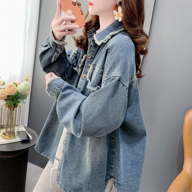 빈티지 홍콩 맛 데님 블라우스 여성의 봄 2025 새로운 느슨한 캐주얼 프라이드 스트리트스토어 가기