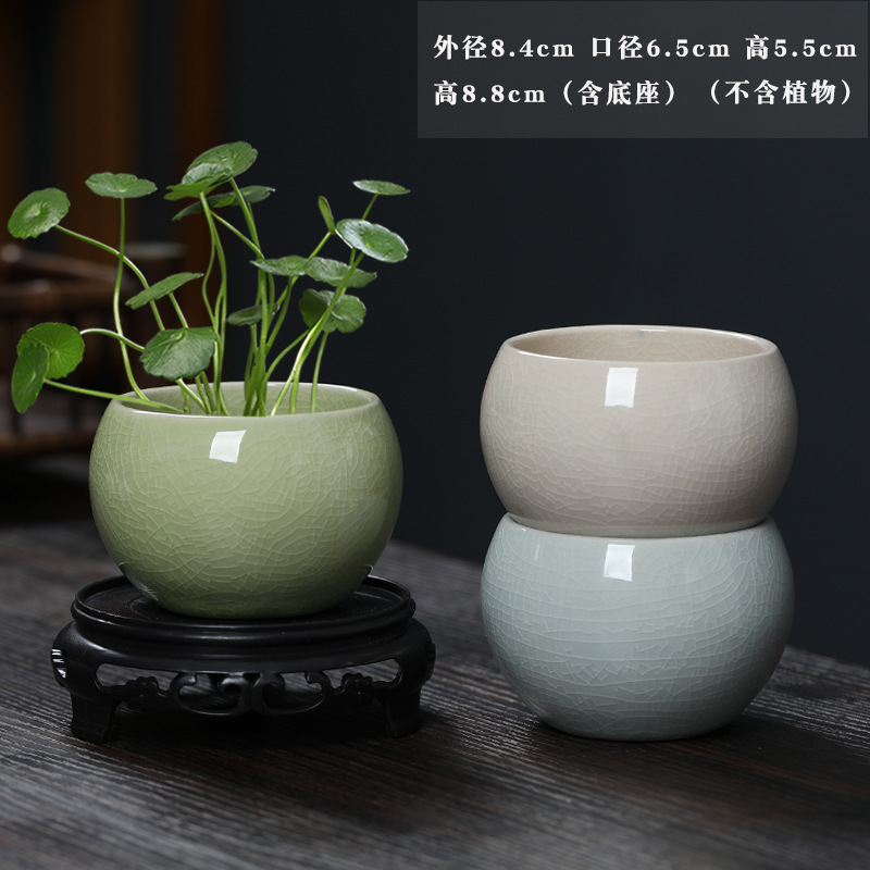 세라믹 Ge 가마 오픈 조각 세라믹 수경 작은 화분 비 다공성 꽃 그릇 녹색 식물 컨테이너 작은 신선한 데스크탑 꽃 용기