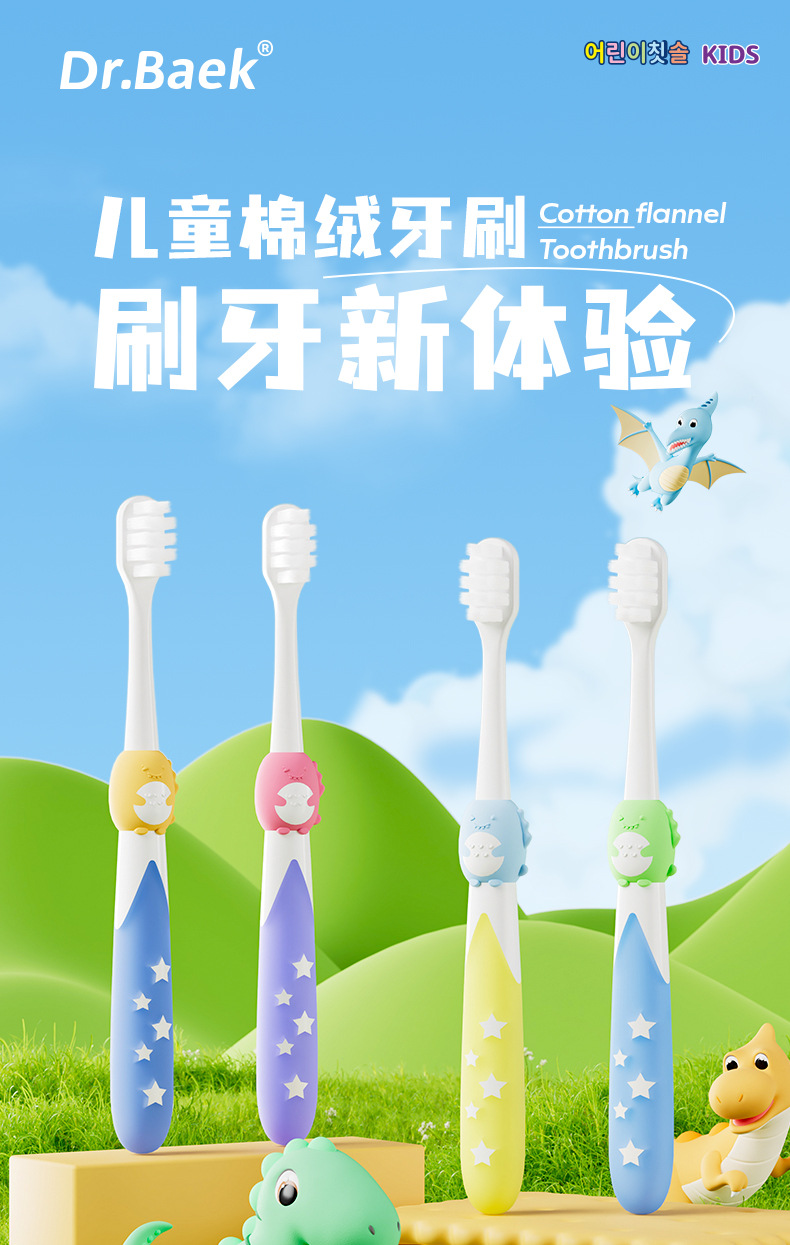 한국 브랜드 어린이 부드러운 칫솔 귀여운 작은 공룡 3-6 세 껌 보호 어린이 칫솔 제조 업체 정품스토어 가기