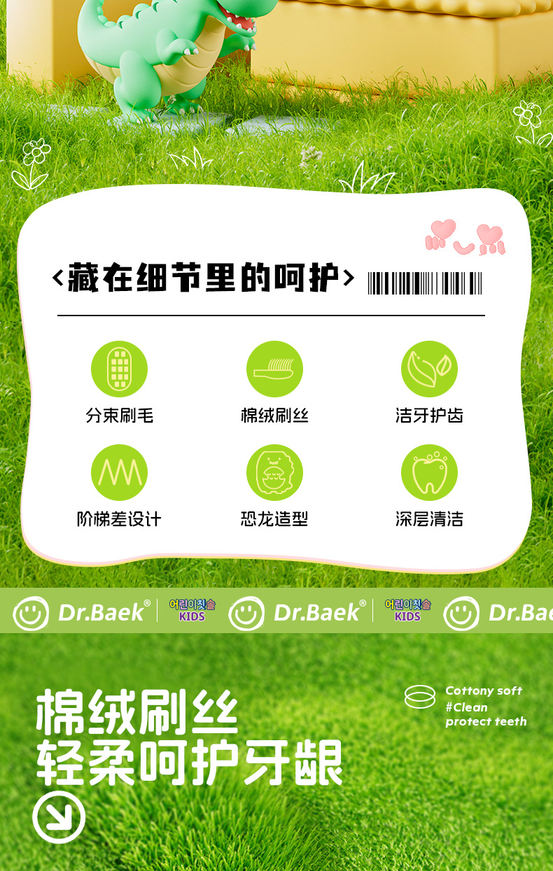 한국 브랜드 어린이 부드러운 칫솔 귀여운 작은 공룡 3-6 세 껌 보호 어린이 칫솔 제조 업체 정품