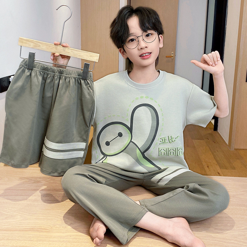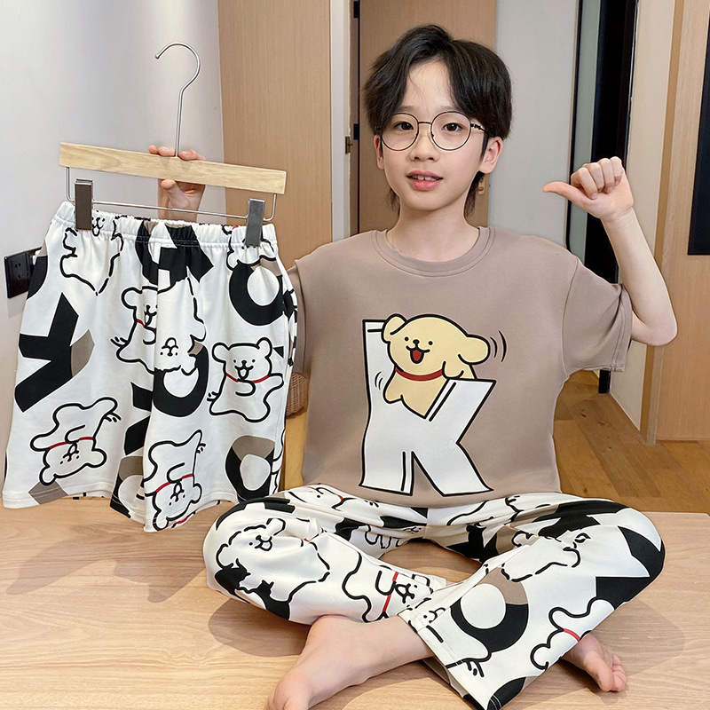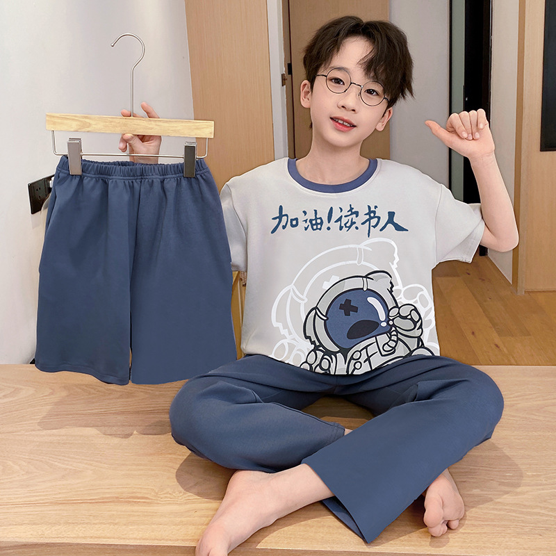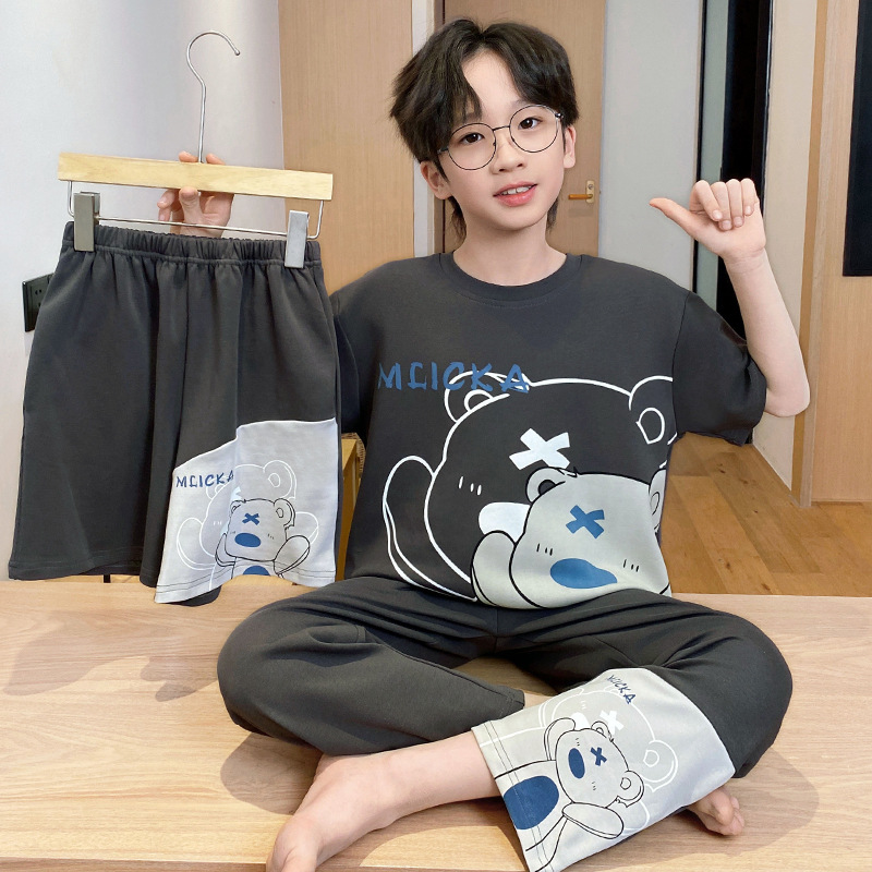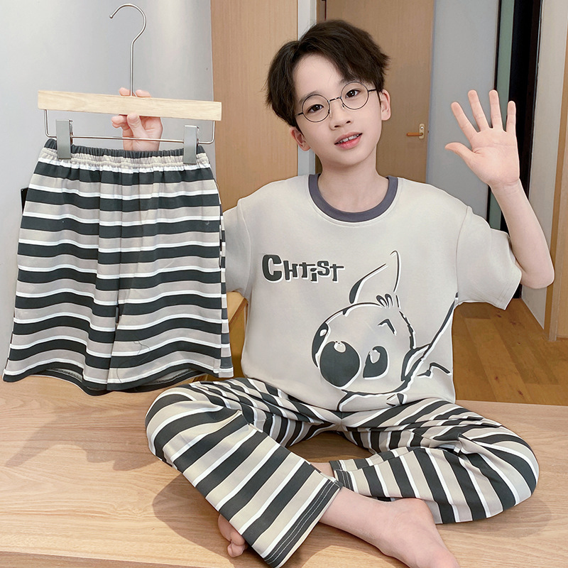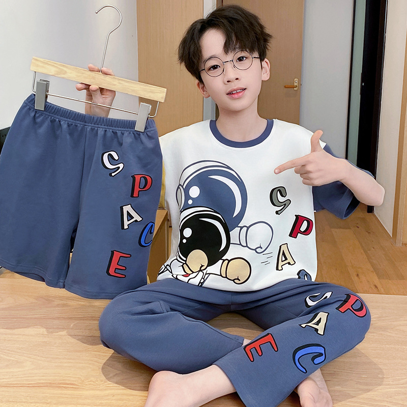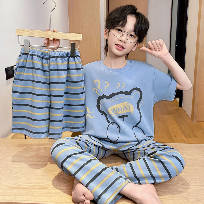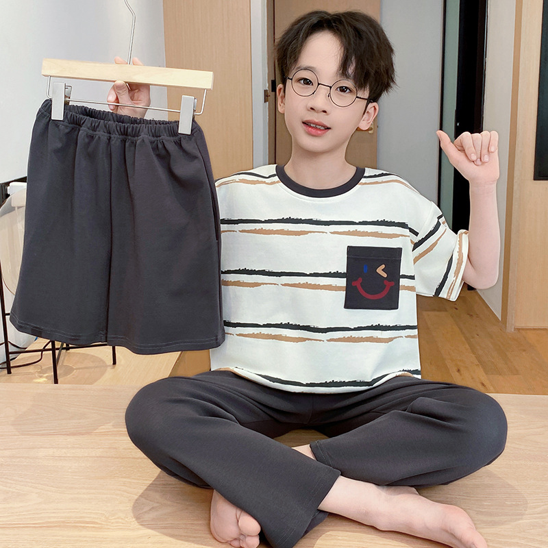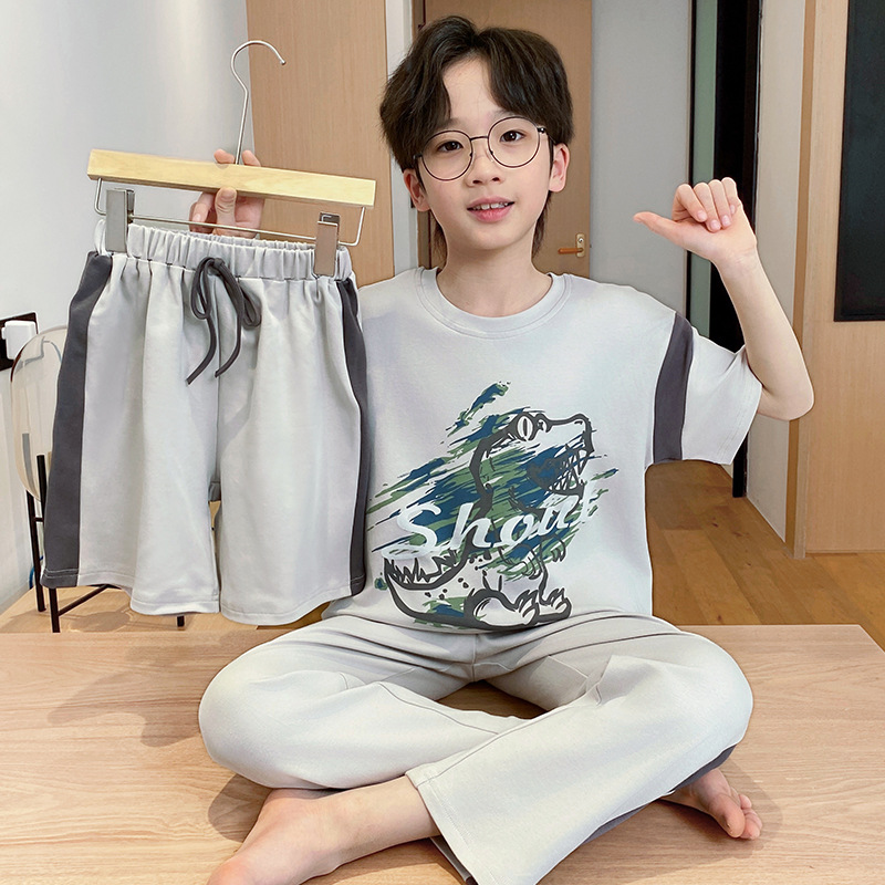 어린이 잠옷 3 피스 여름 순수 코튼 얇은 새로운 스타일 소년 중대형 어린이 소년 청소년 홈웨어스토어 가기