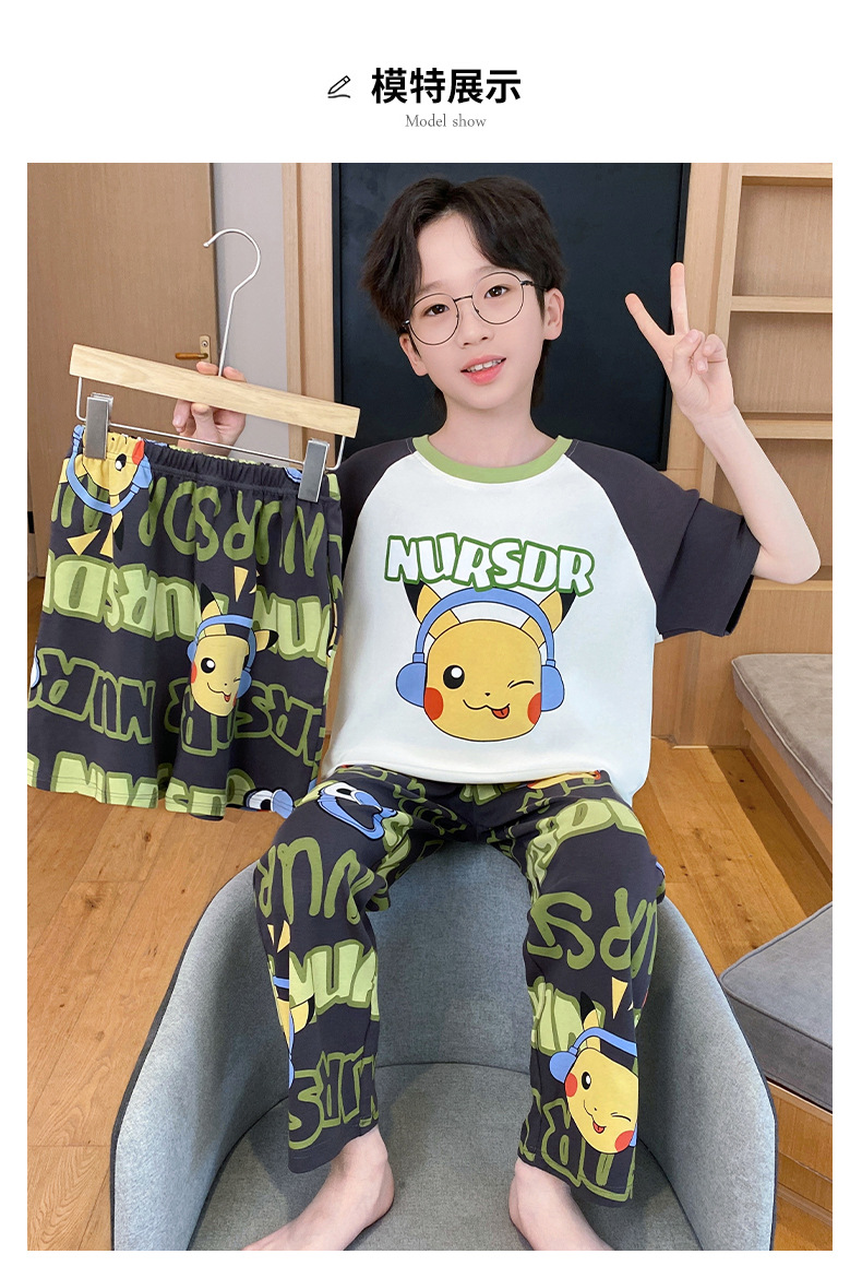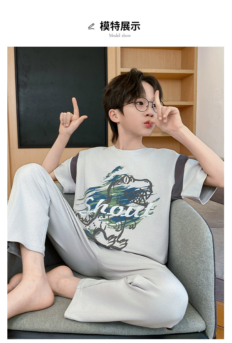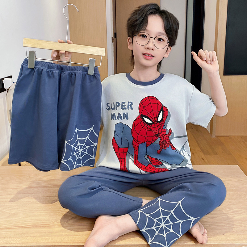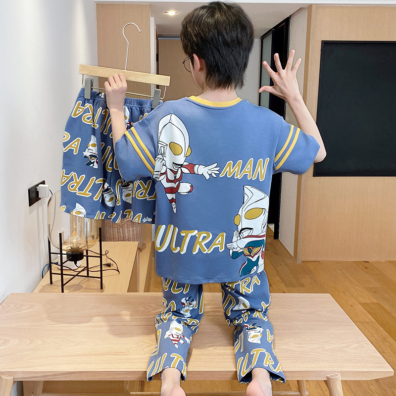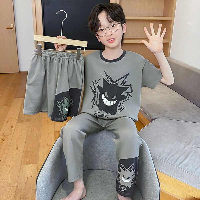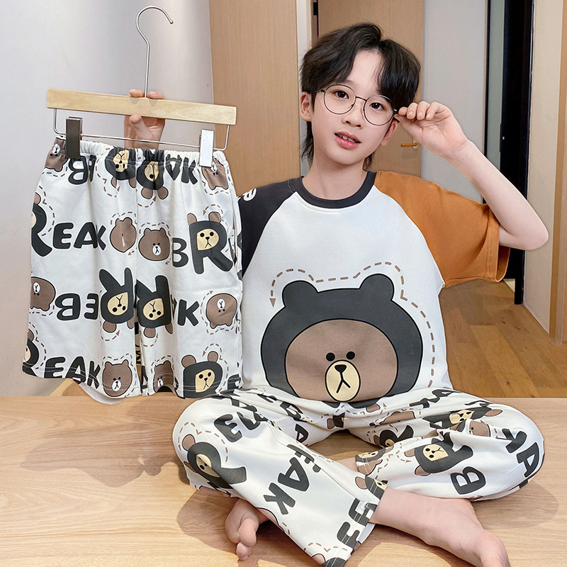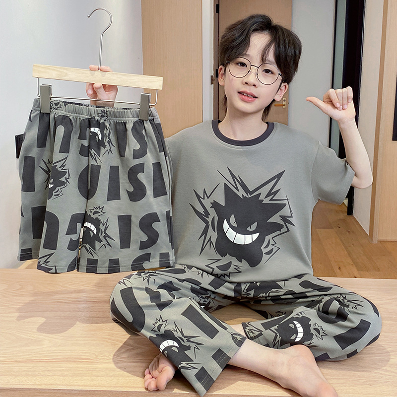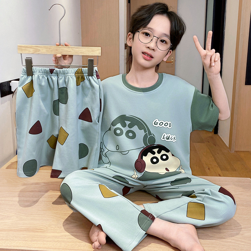 어린이 잠옷 3 피스 여름 순수 코튼 얇은 새로운 스타일 소년 중대형 어린이 소년 청소년 홈웨어스토어 가기