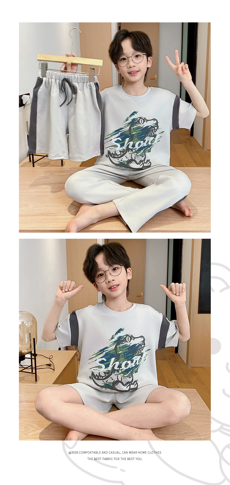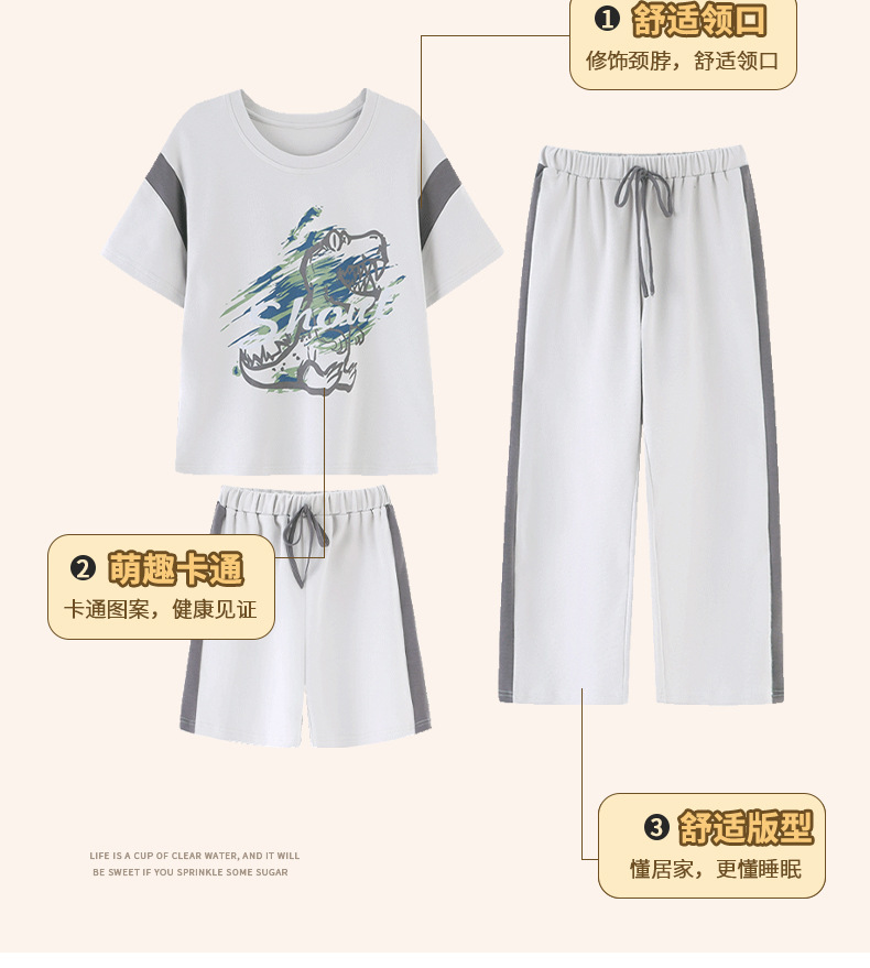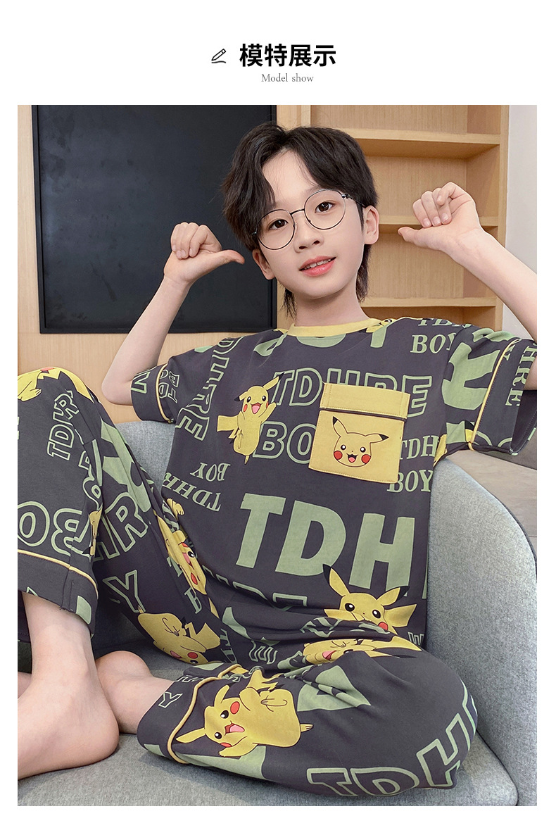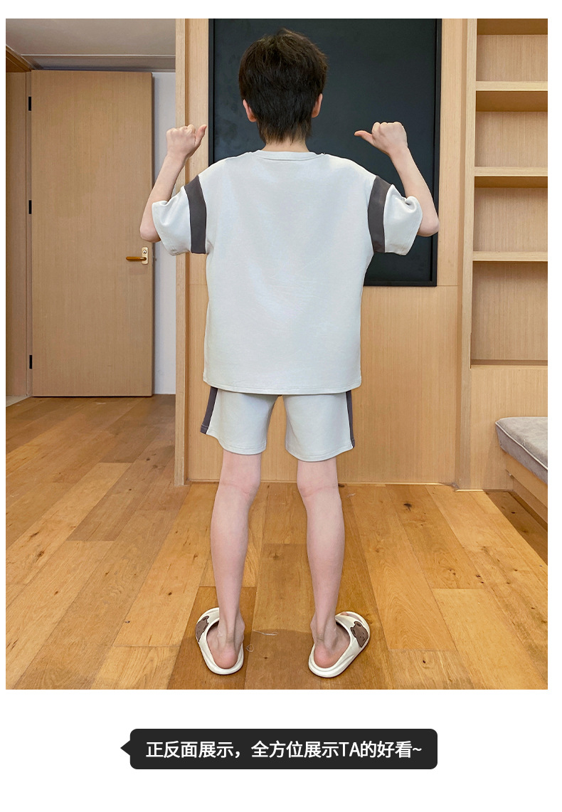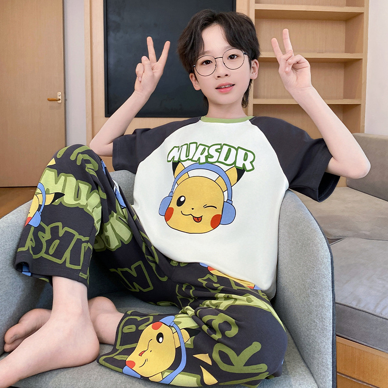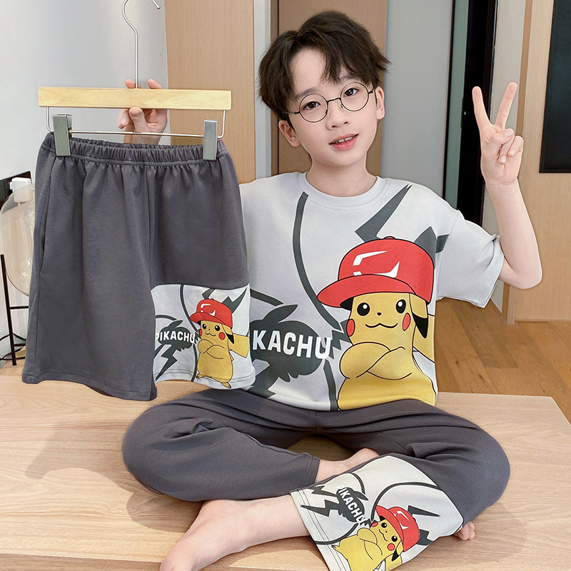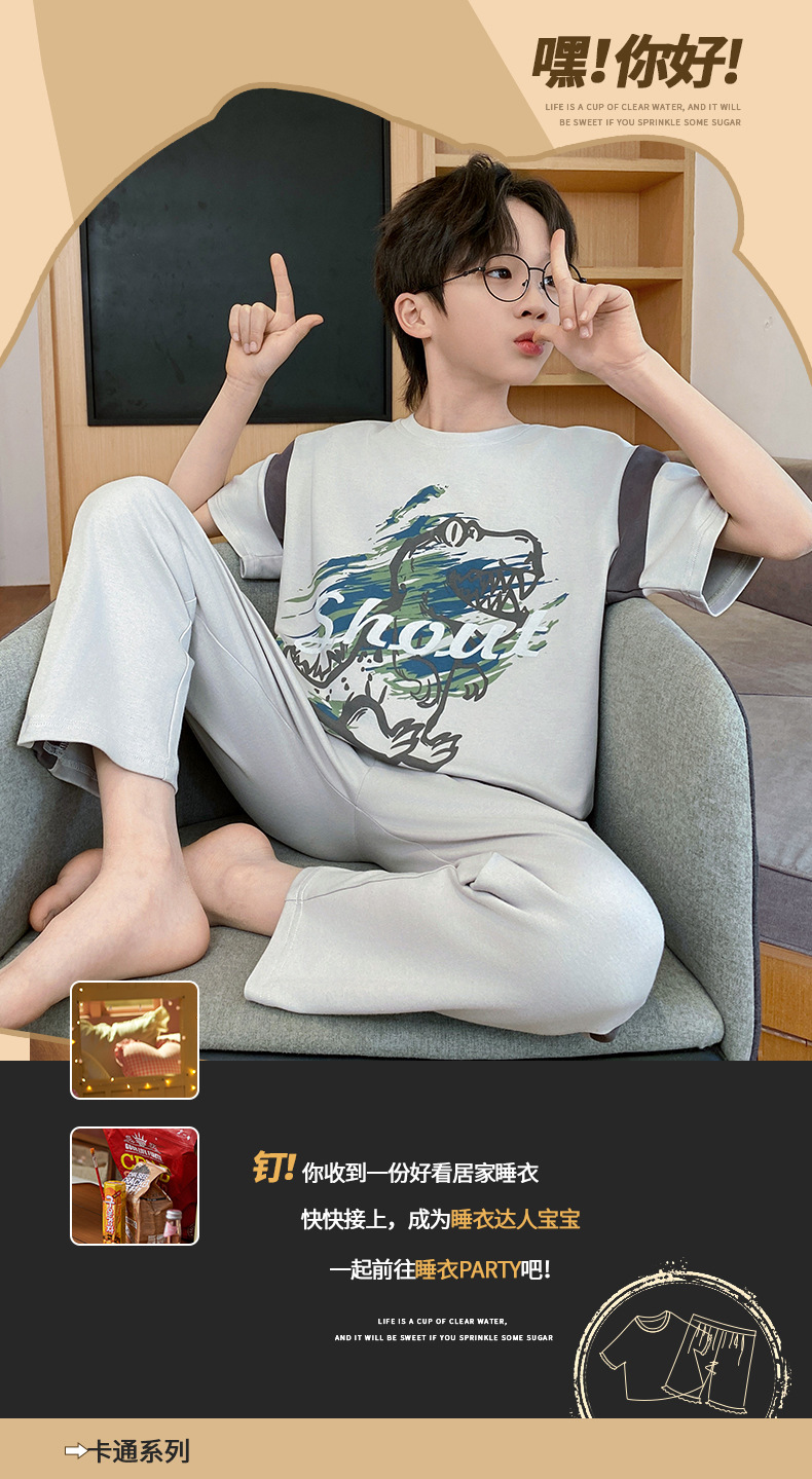 어린이 잠옷 3 피스 여름 순수 코튼 얇은 새로운 스타일 소년 중대형 어린이 소년 청소년 홈웨어스토어 가기