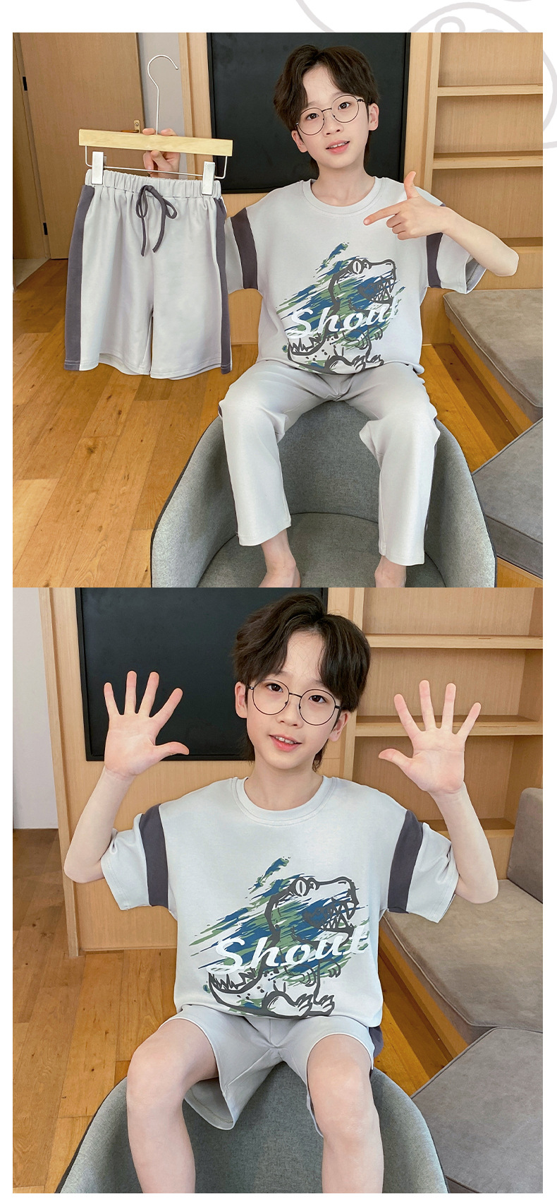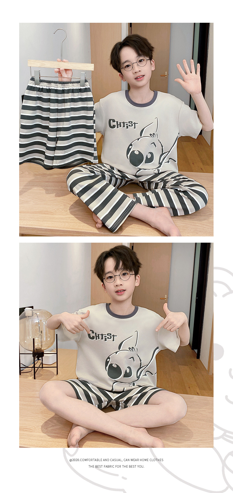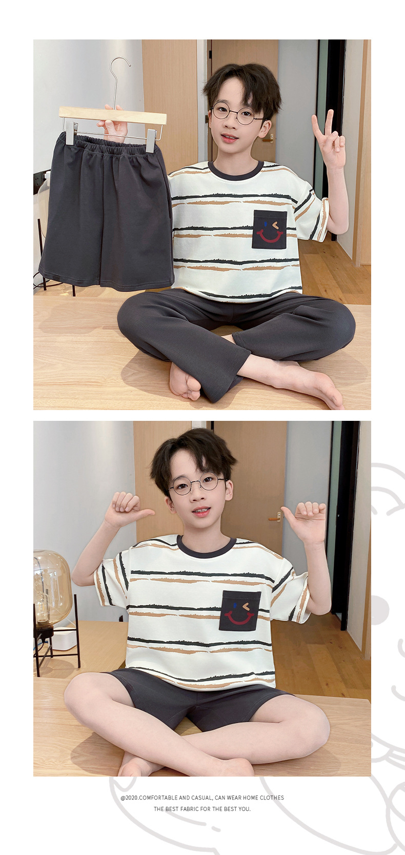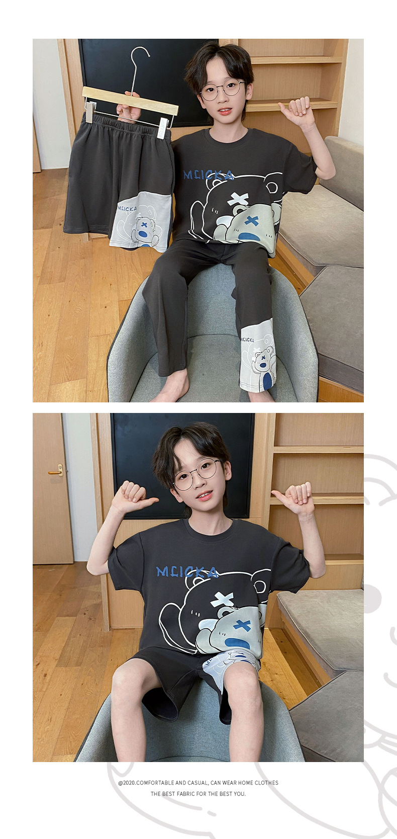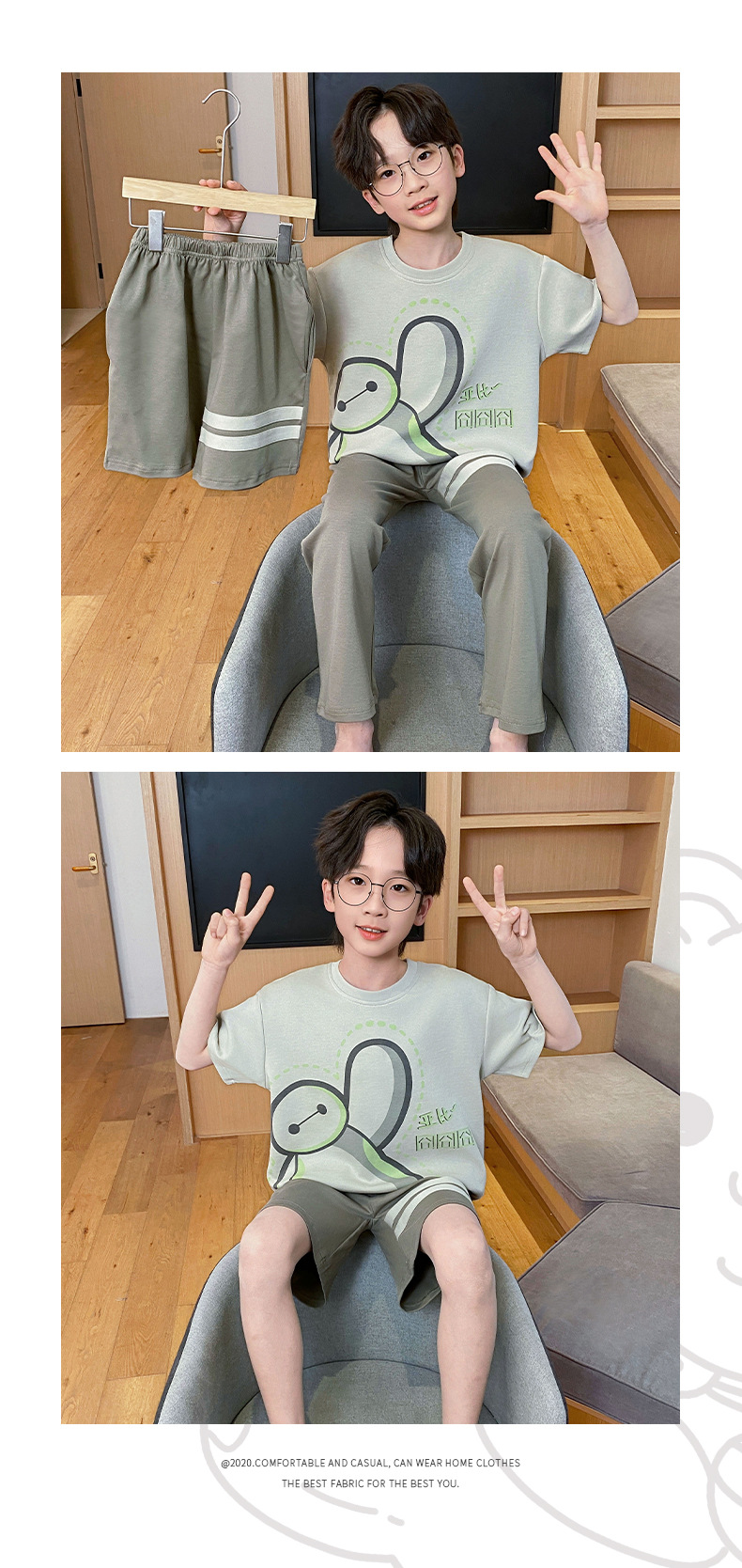 어린이 잠옷 3 피스 여름 순수 코튼 얇은 새로운 스타일 소년 중대형 어린이 소년 청소년 홈웨어스토어 가기