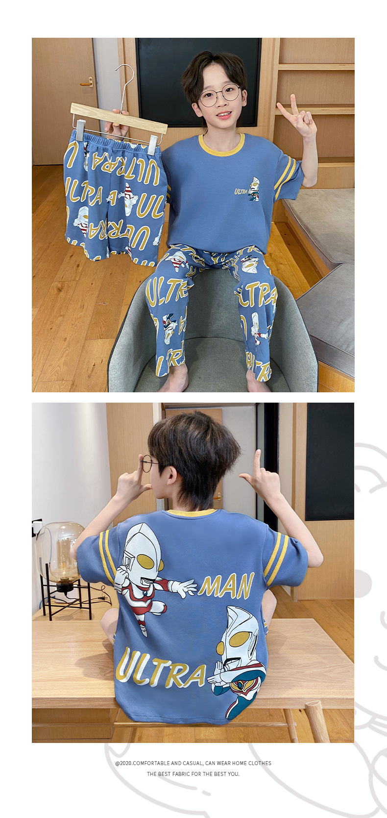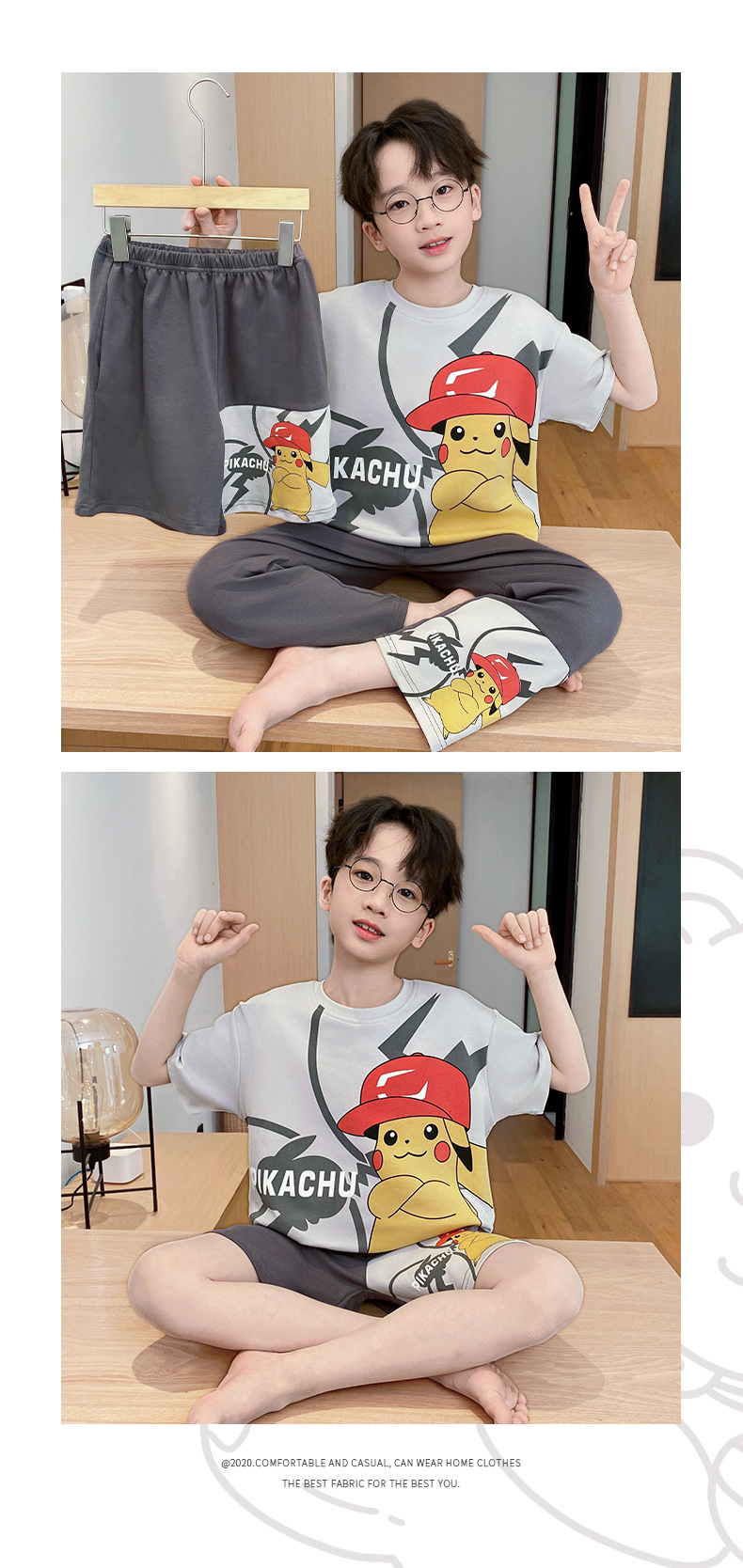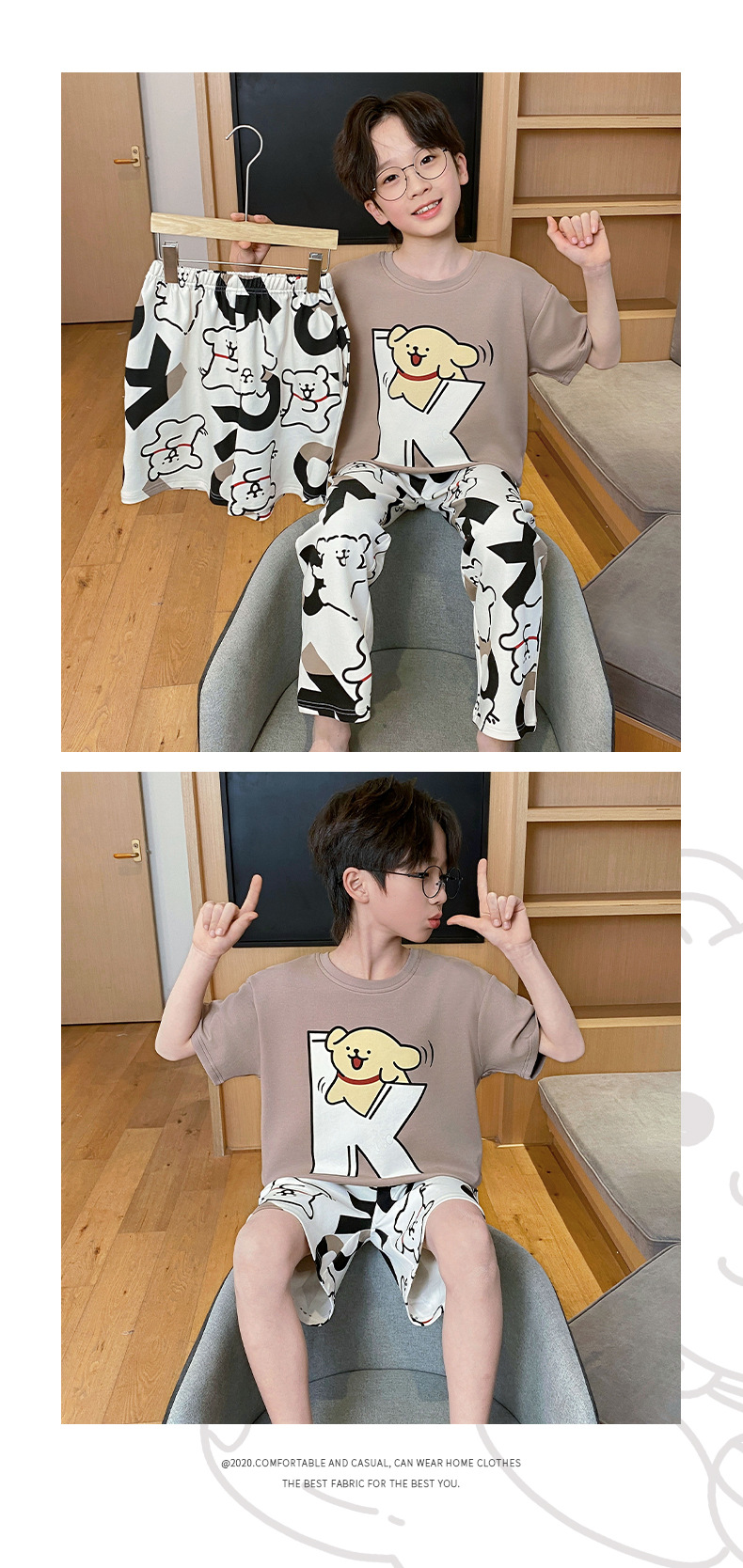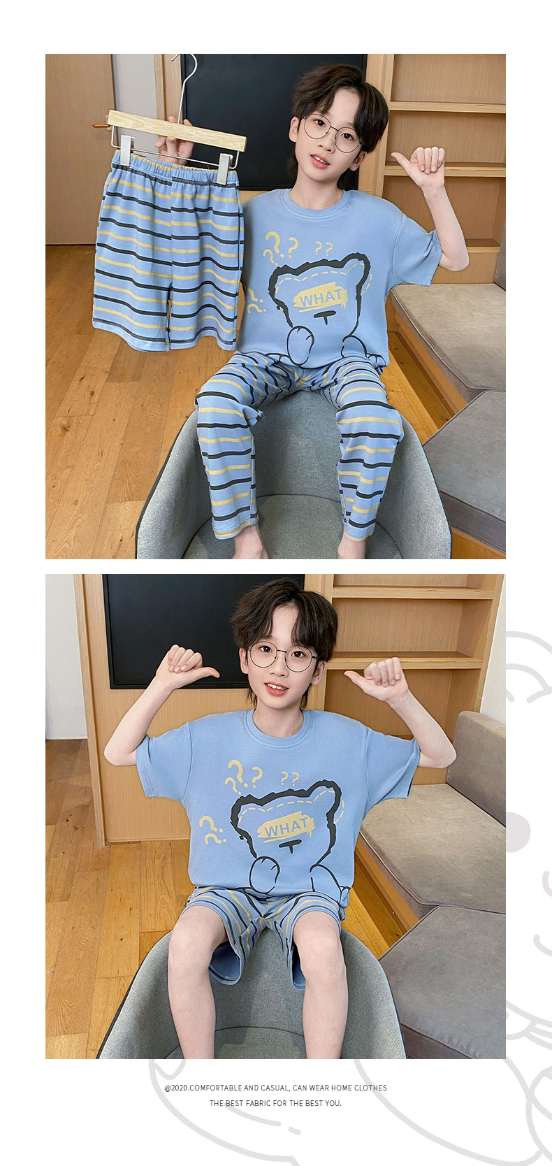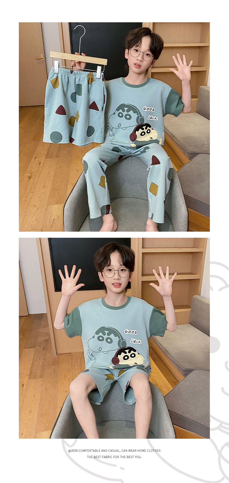 어린이 잠옷 3 피스 여름 순수 코튼 얇은 새로운 스타일 소년 중대형 어린이 소년 청소년 홈웨어스토어 가기