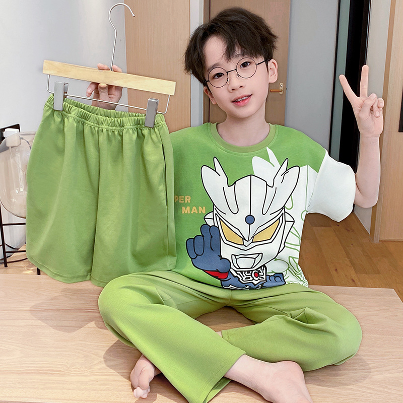 어린이 잠옷 3 피스 여름 순수 코튼 얇은 새로운 스타일 소년 중대형 어린이 소년 청소년 홈웨어
