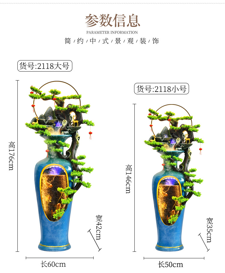 바닥에 흐르는 물 분수 꽃병 장식품 집 장식 행운의 거실 사무실 순환 물 풍경 가습기스토어 가기
