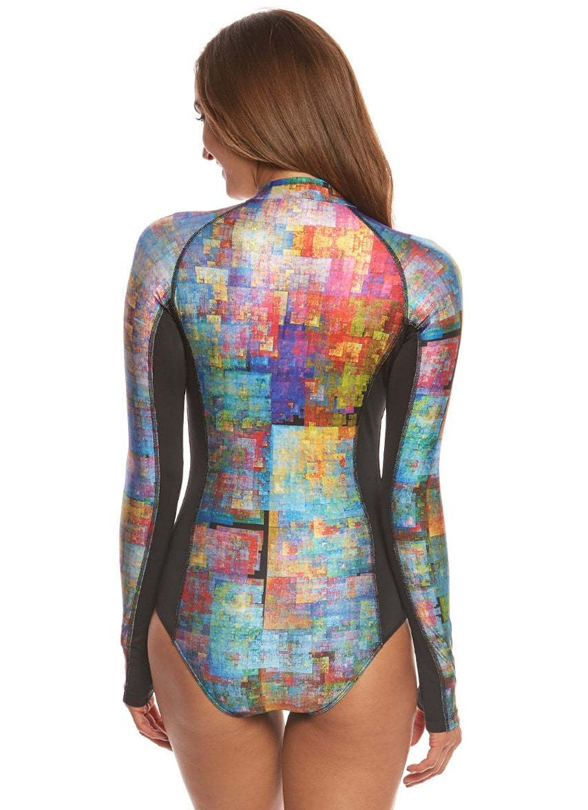 유럽과 미국의 대외 무역 원피스 인쇄 긴 소매 upf50 선 스크린 서핑 세트 선 스크린 여성 수영복 다이빙 세트 수영복
