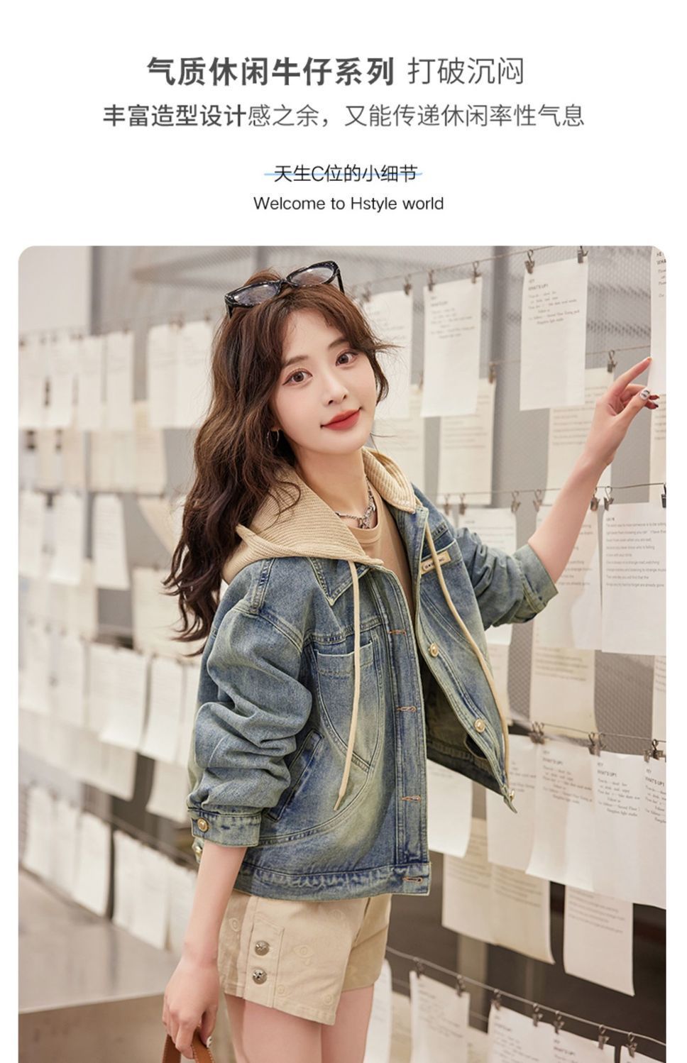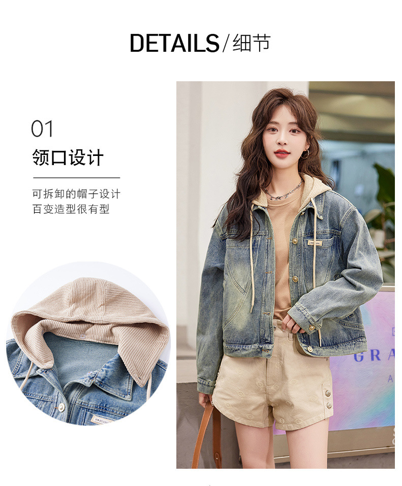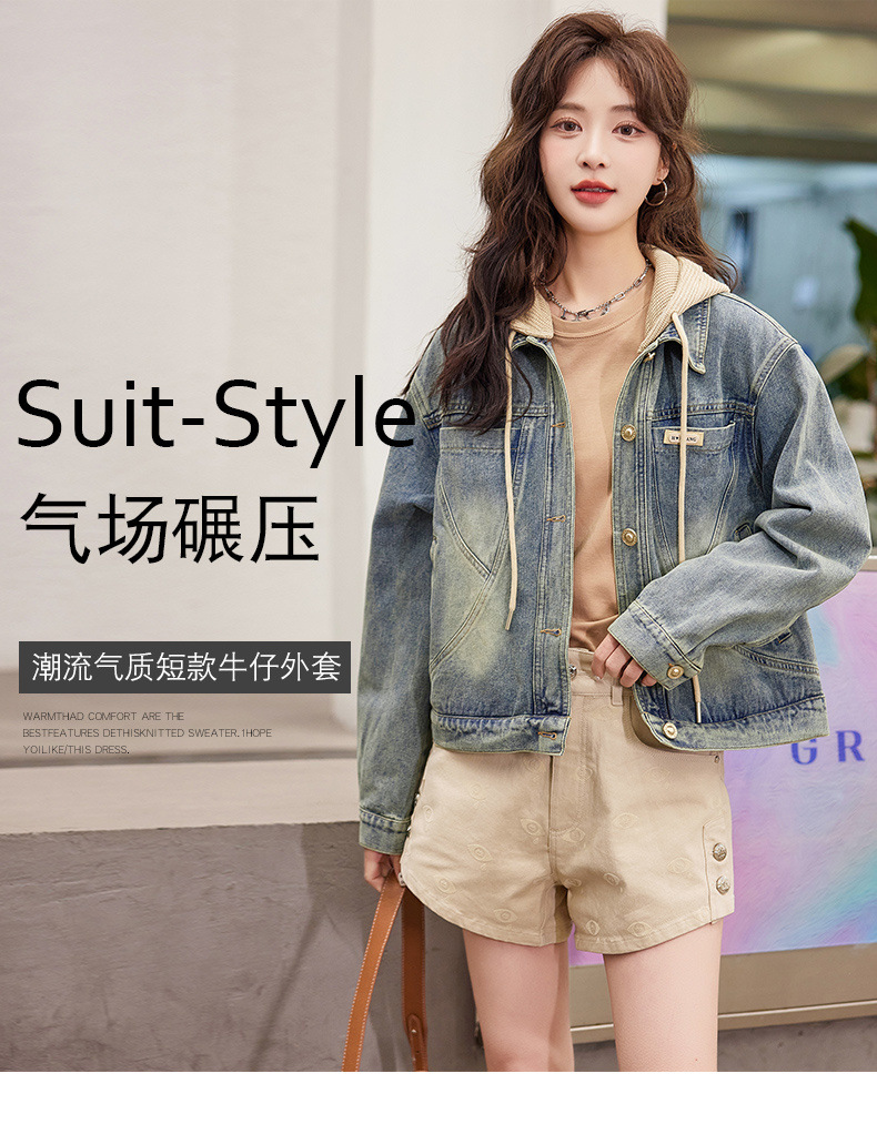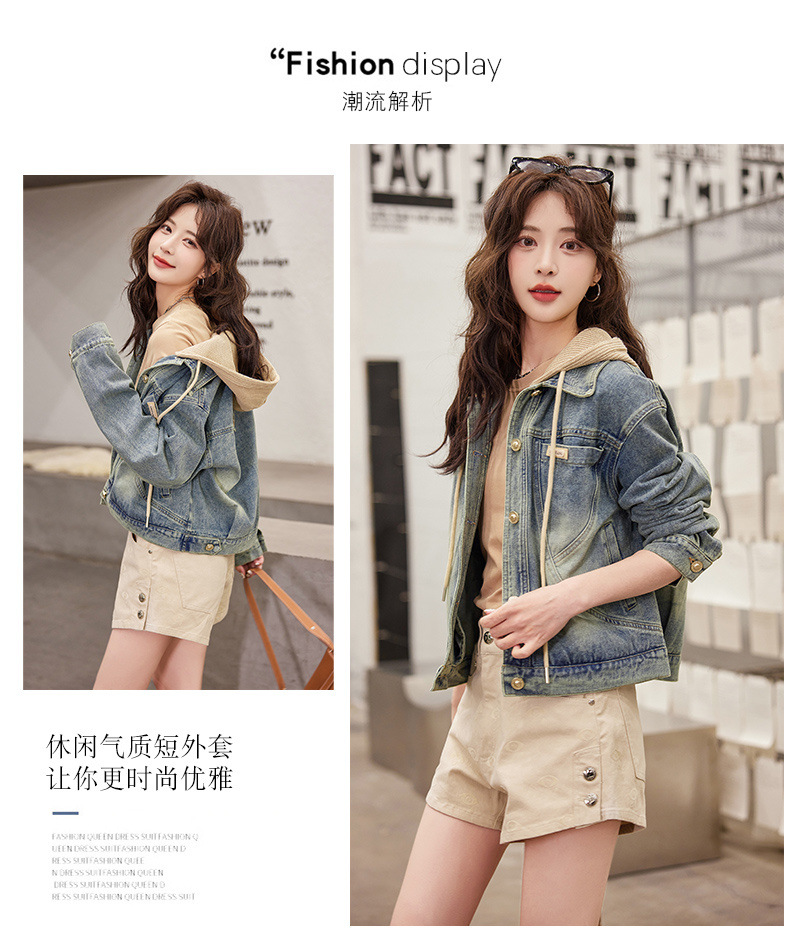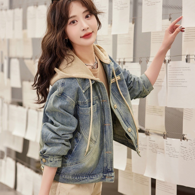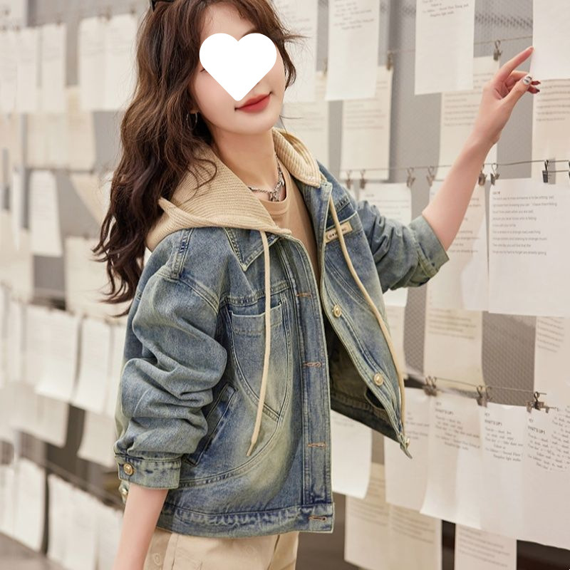 우아한 짧은 데님 코트 여성의 2025 봄 새로운 작은 느슨한 슬림 올해 인기있는 후드 재킷스토어 가기