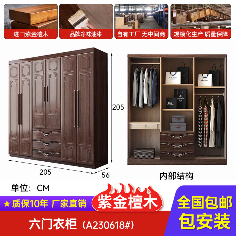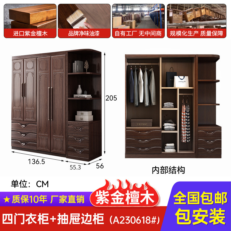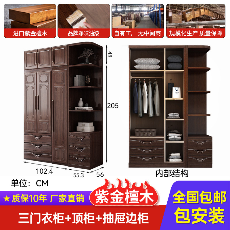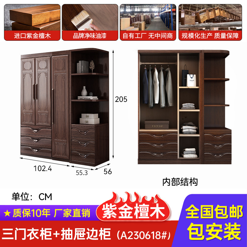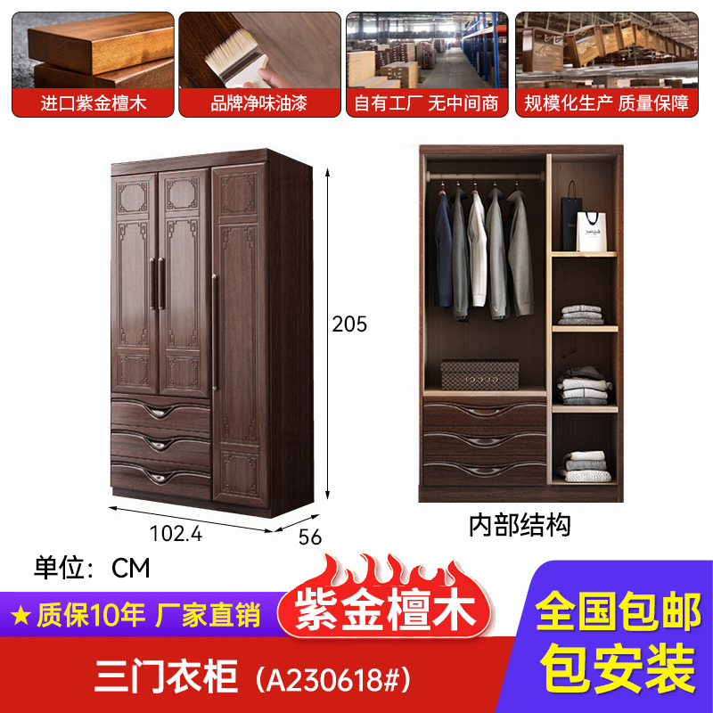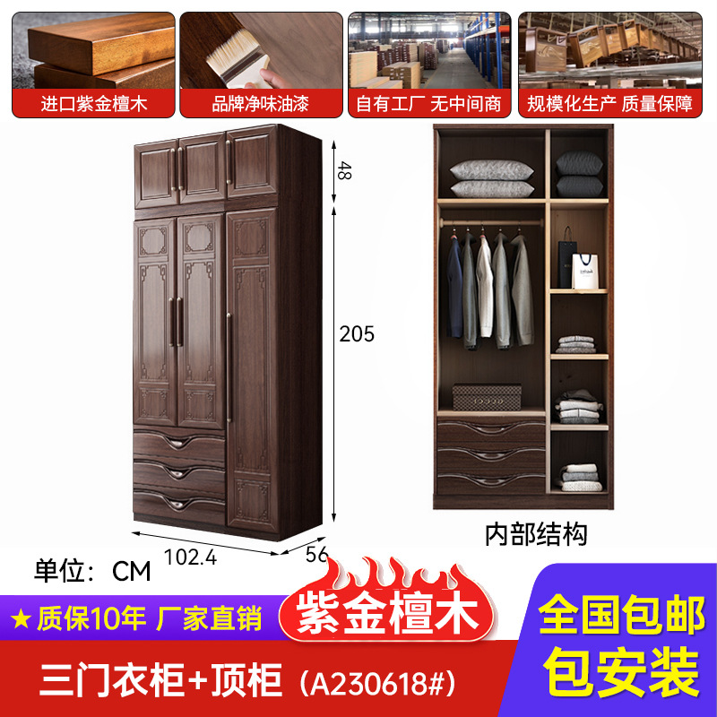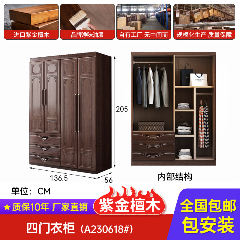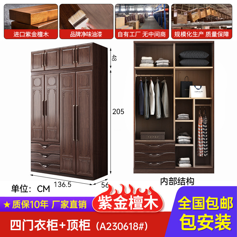 새로운 중국 스타일 퍼플 골드 샌달 우드 옷장 홈 침실 현대 단순한 경제적 인 모든 단단한 나무 저장 캐비닛