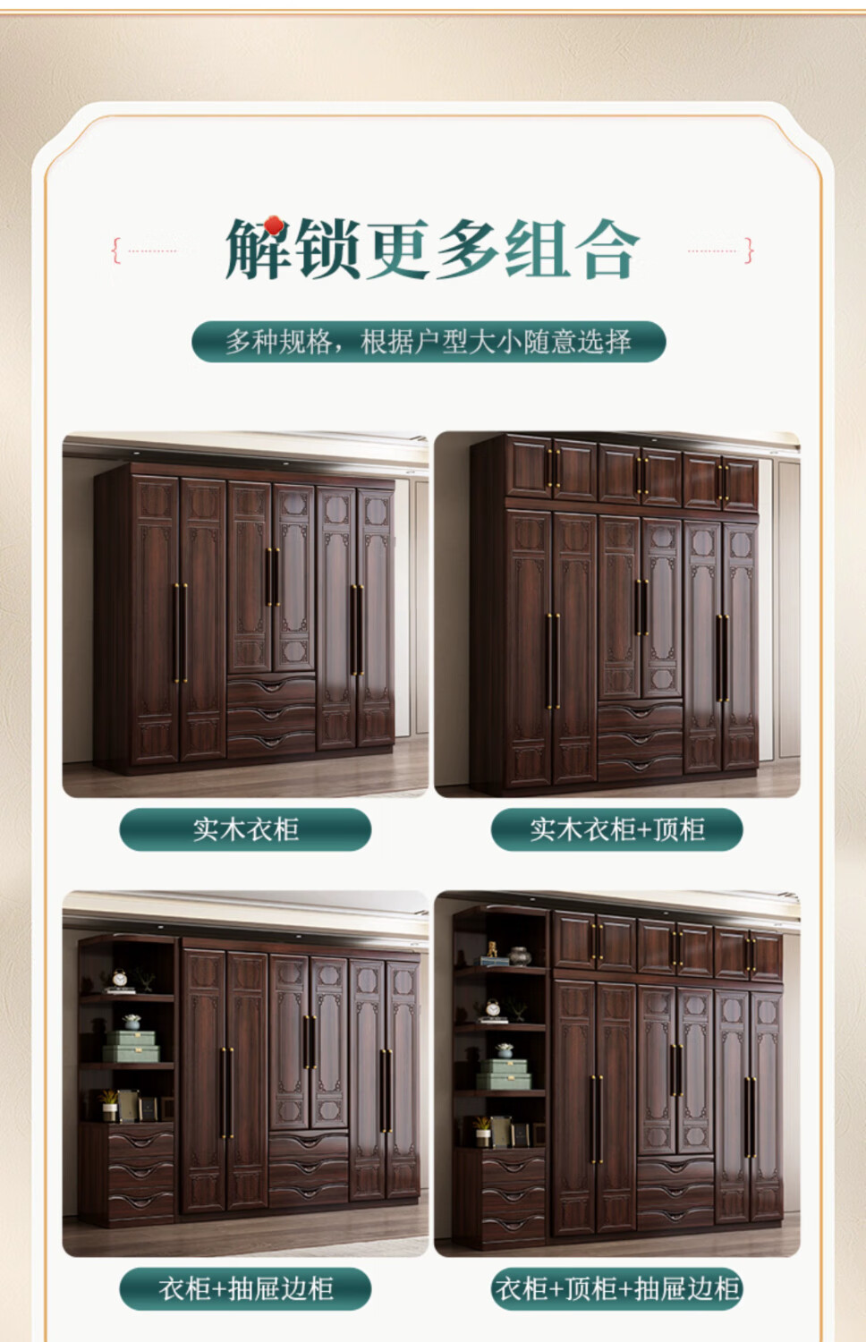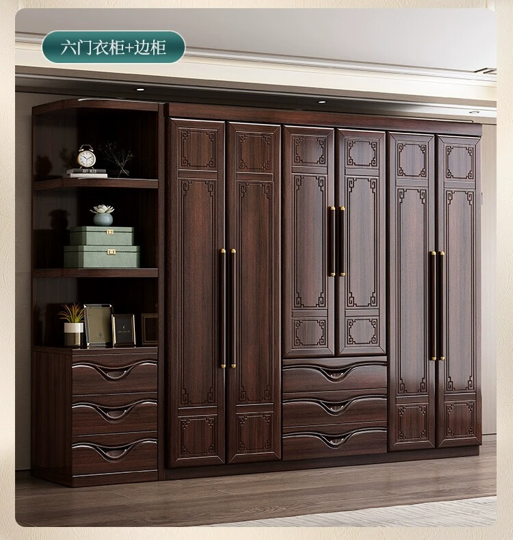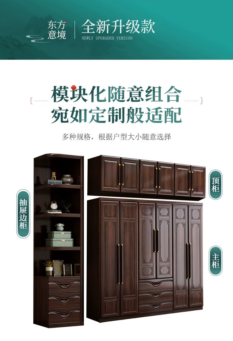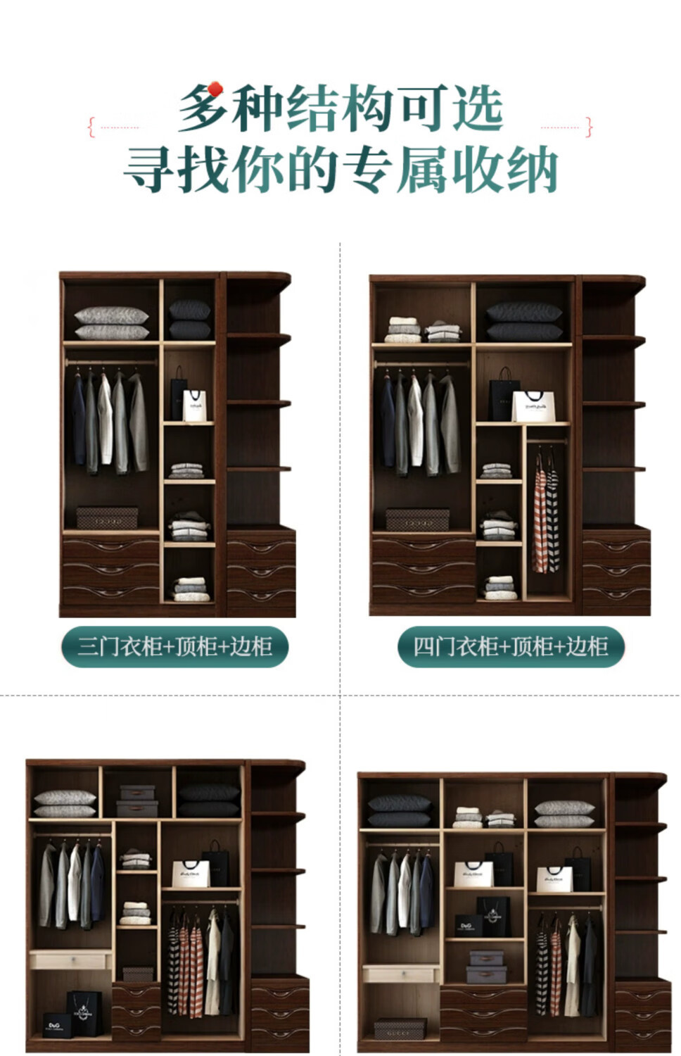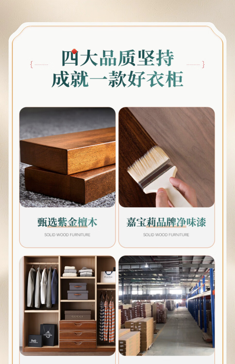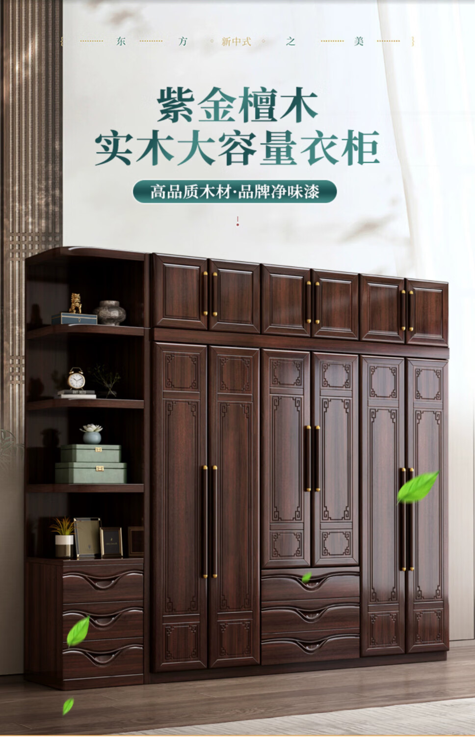 새로운 중국 스타일 퍼플 골드 샌달 우드 옷장 홈 침실 현대 단순한 경제적 인 모든 단단한 나무 저장 캐비닛