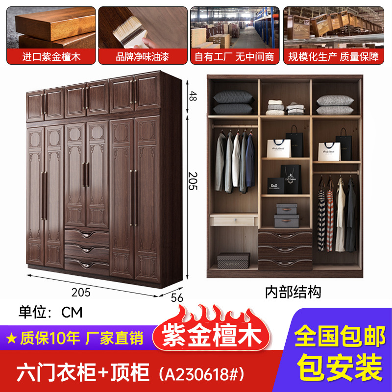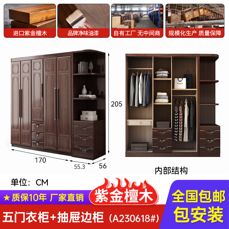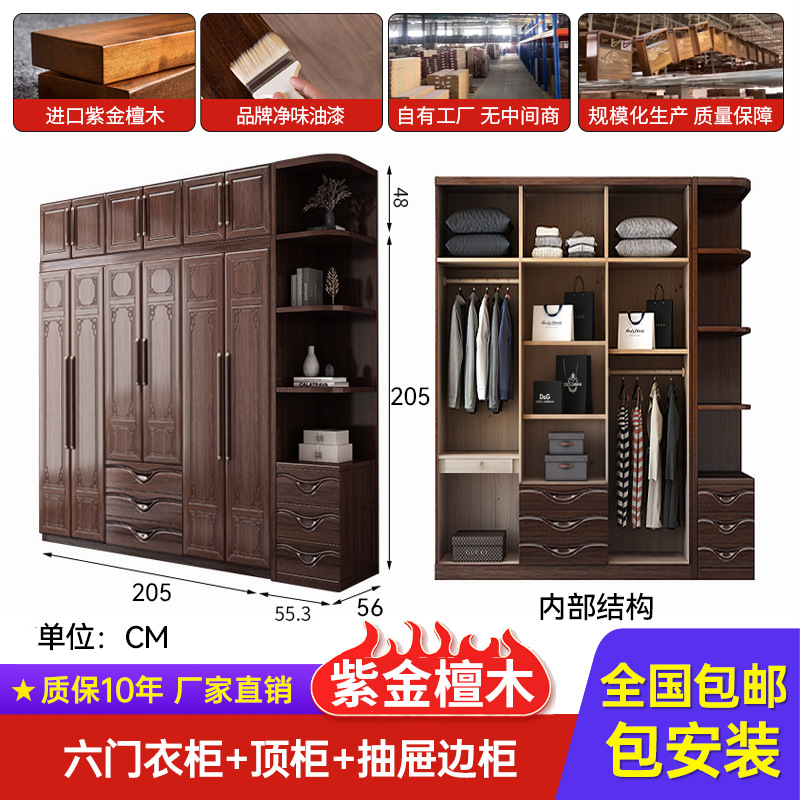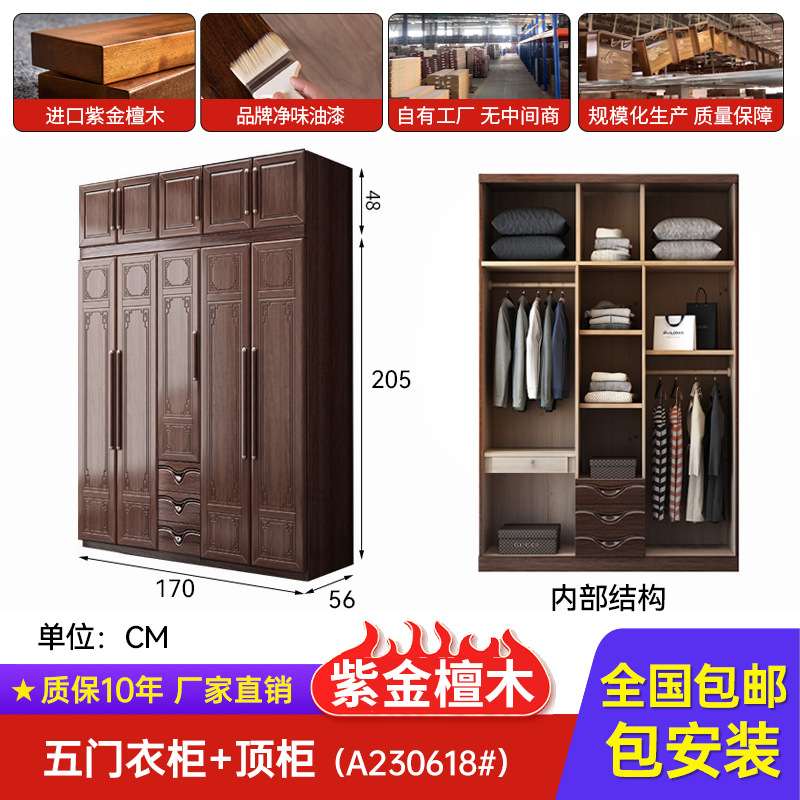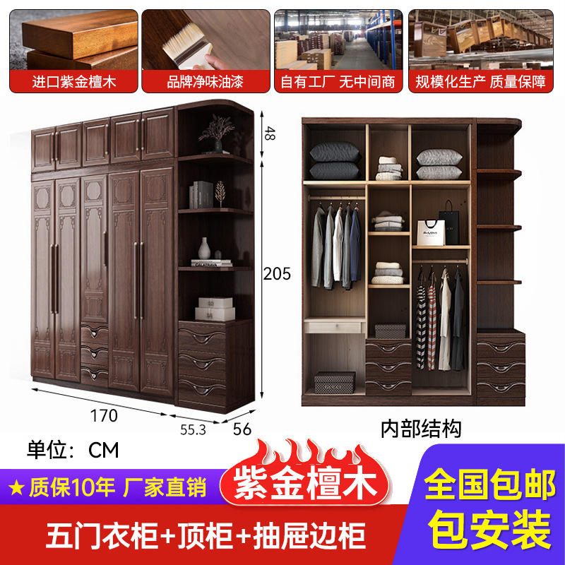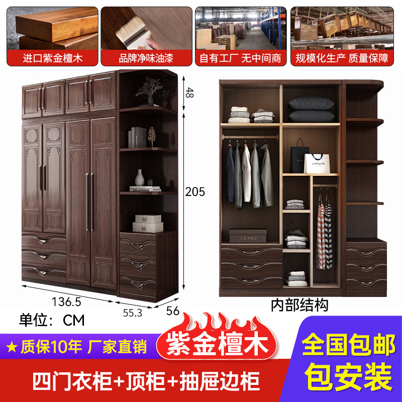 새로운 중국 스타일 퍼플 골드 샌달 우드 옷장 홈 침실 현대 단순한 경제적 인 모든 단단한 나무 저장 캐비닛스토어 가기