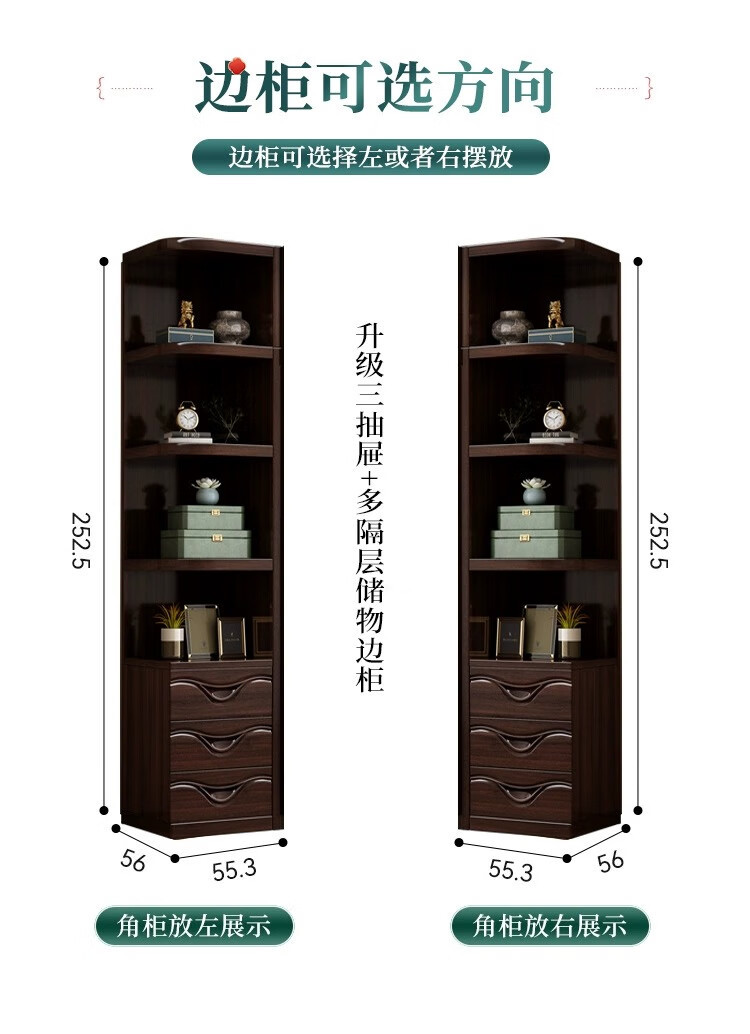 • 3도어 옷장 + 상단 수납장 + 서랍 측면 수납장