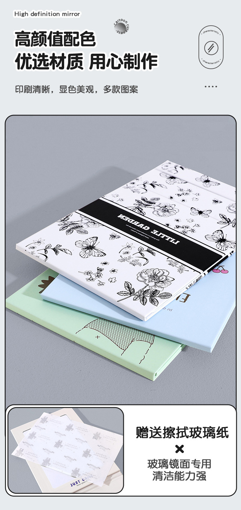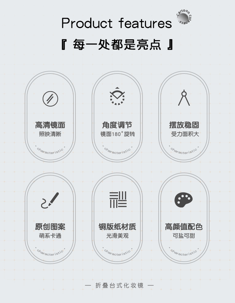 ✅휴대용 데스크탑 스탠딩 데스크탑 기숙사 사무실 대형 접이식 메이크업 미러 학생 Guofeng 서예 뷰티 메이크업 미러스토어 가기