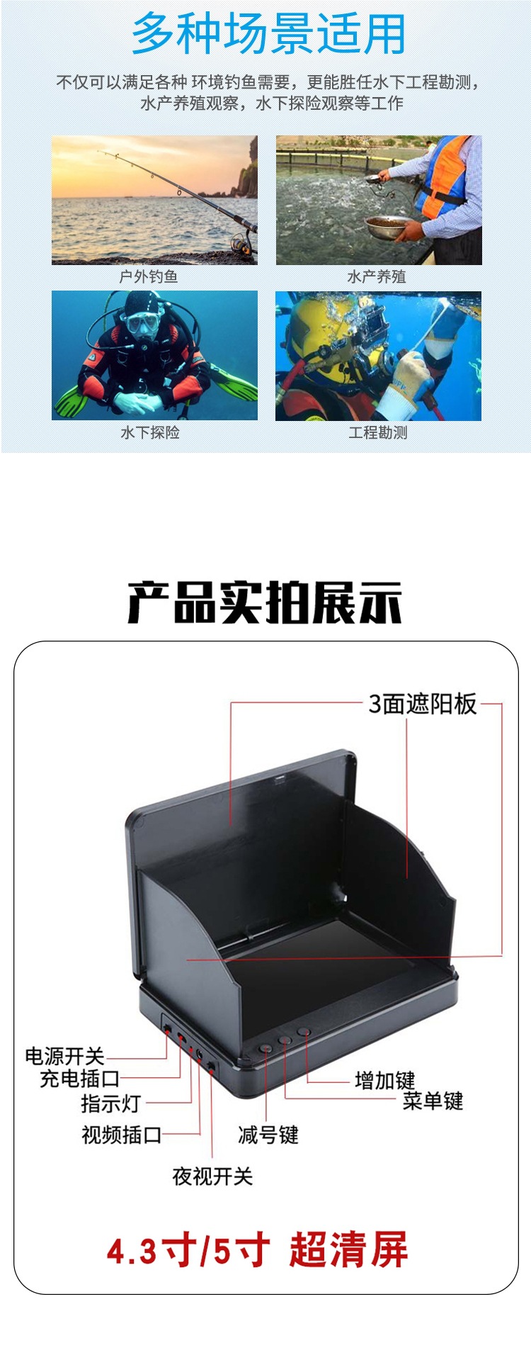 • 심도 측정 및 온도 측정 프로브 + 방수 스크린 5inch개 + 상자 30m개