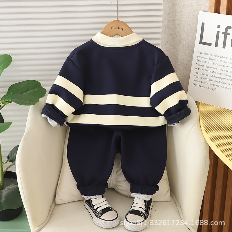 남학생 스프링웨어 세트 2025 새로운 스포츠 세트 새로운 서양식 어린이 소년 아기 땀 스포츠 투피스 세트스토어 가기