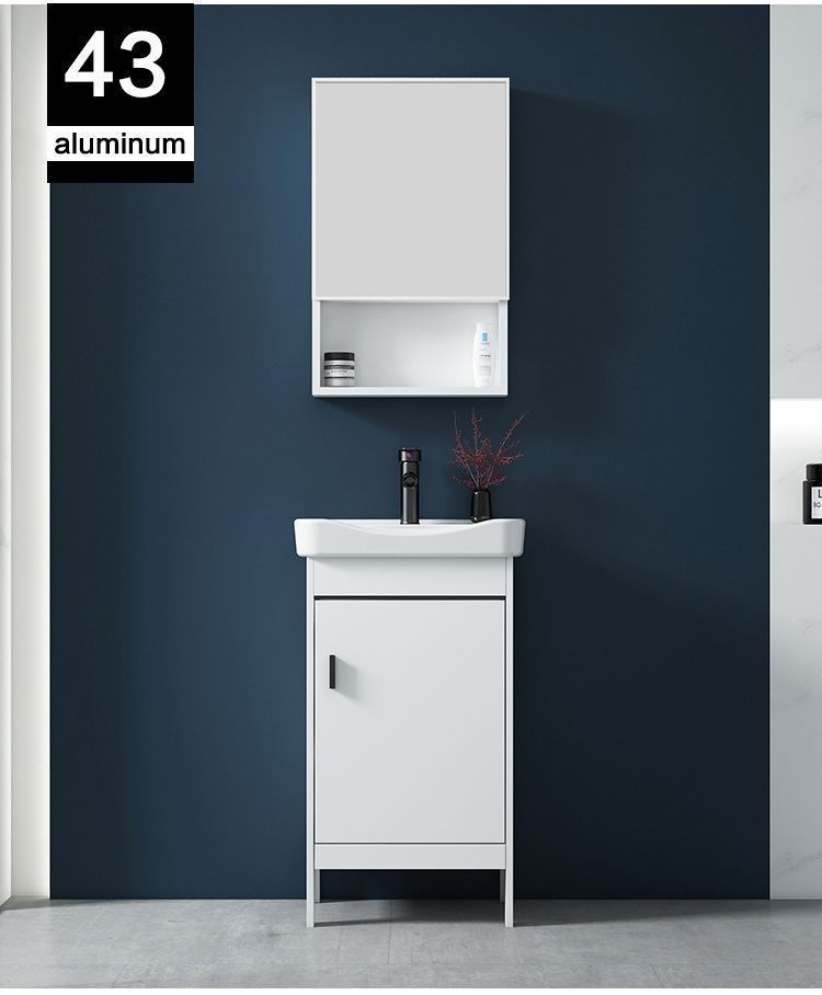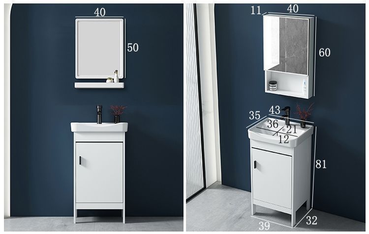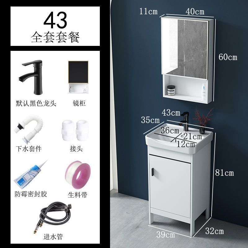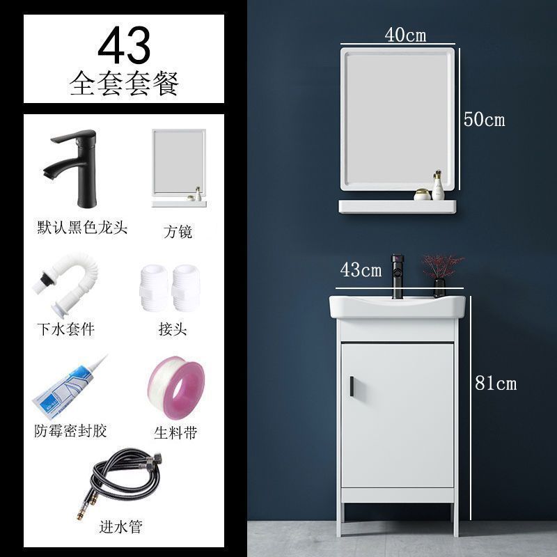 • 43CM 흰색 바닥 세라믹 세면대 캐비닛 - 전체 액세서리 세트 + 도어 미러 캐비닛