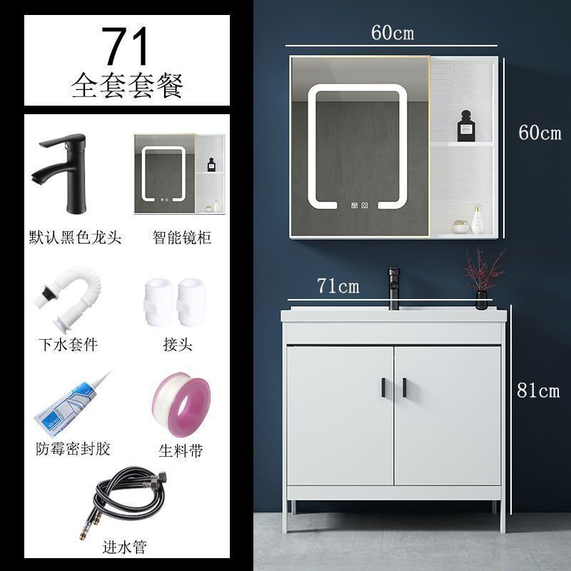 • 71CM 흰색 바닥 세라믹 세면대 캐비닛 - 액세서리 전체 세트 + 스마트 거울 캐비닛