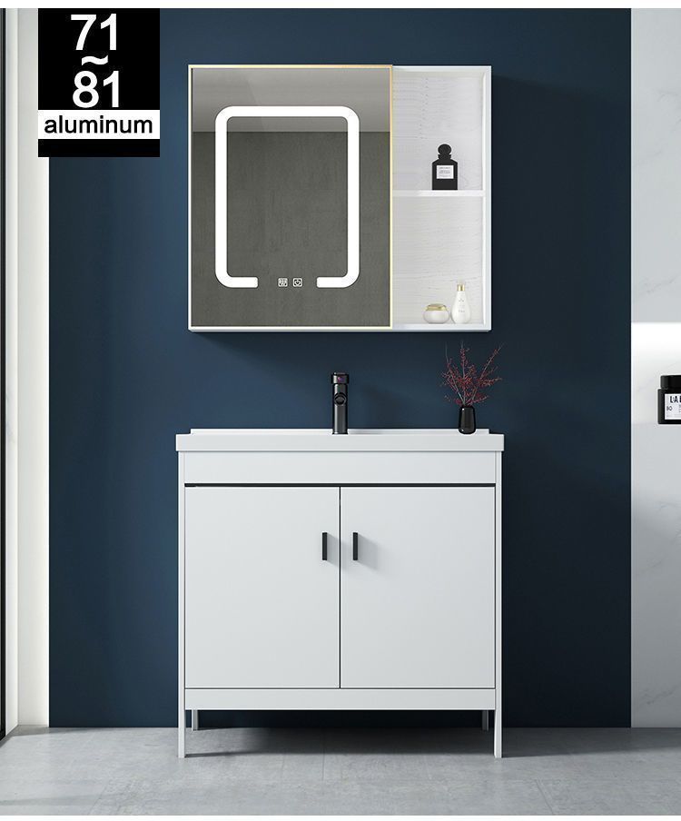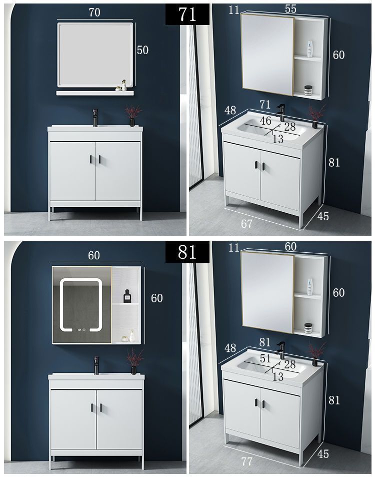 • 81CM 흰색 바닥 세라믹 세면대 캐비닛 - 전체 액세서리 세트 + 대형 도어 미러 캐비닛