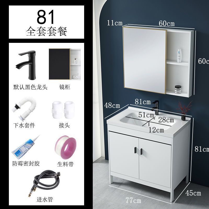 • 81CM 흰색 바닥 세라믹 세면대 캐비닛 - 전체 액세서리 세트(거울 없음)
