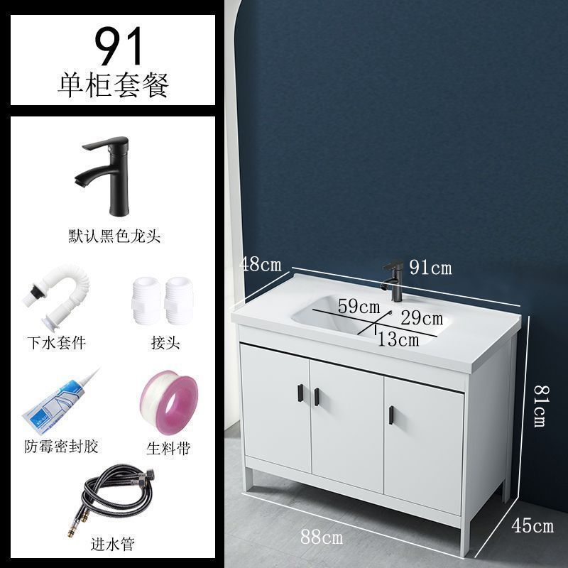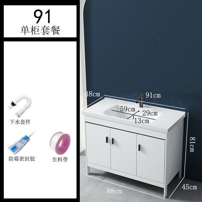 • 91CM 흰색 바닥 세라믹 세면대 캐비닛 - 배수 세트 (거울 없음)