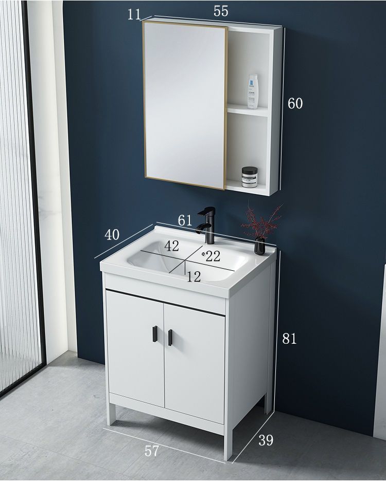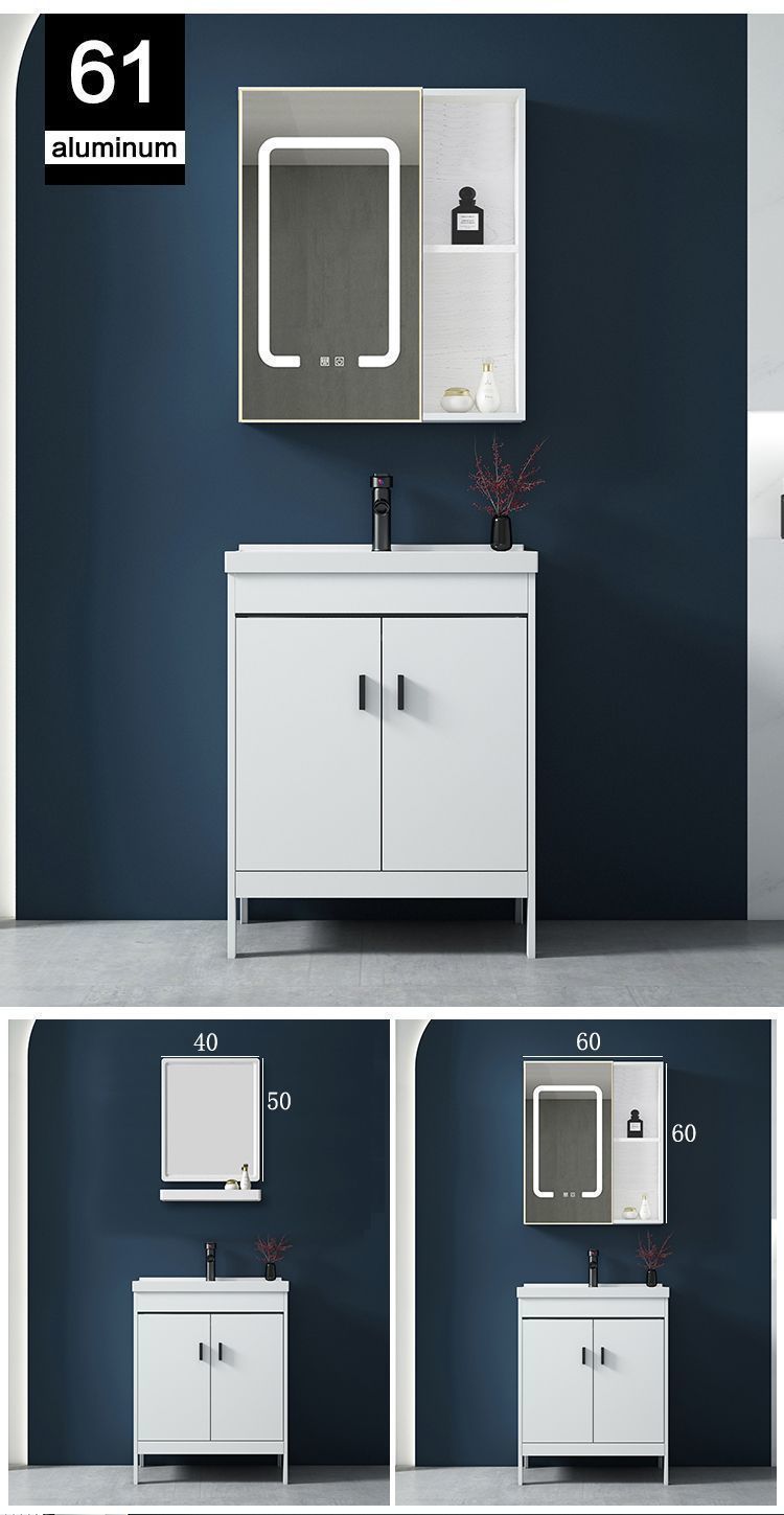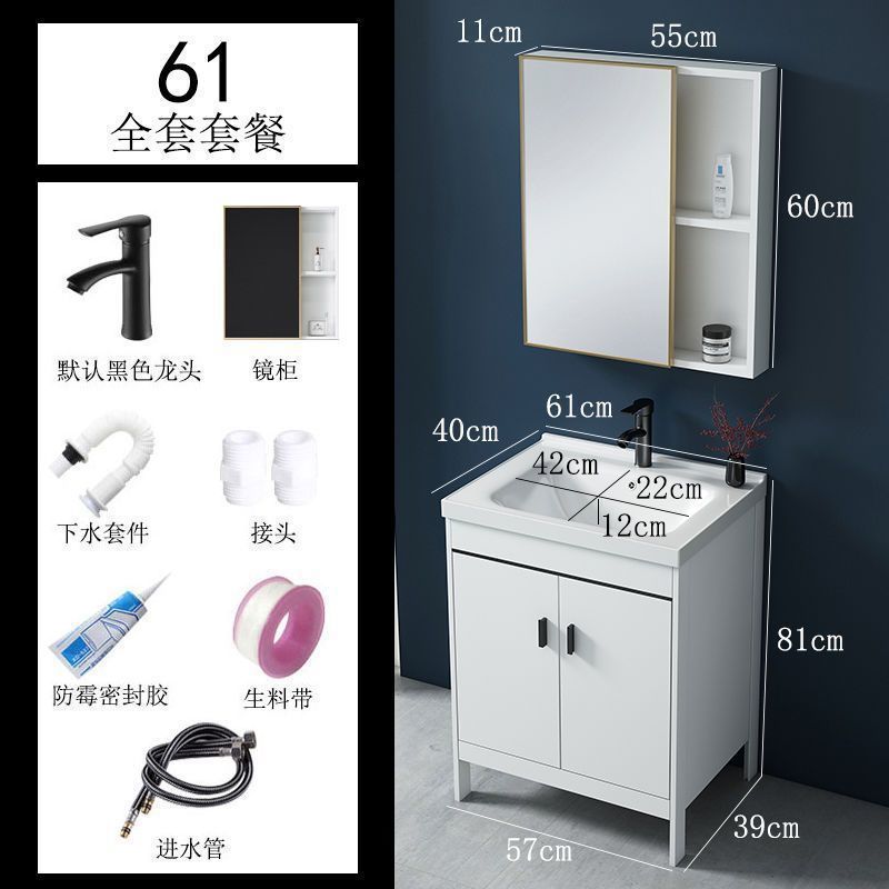 • 60x40CM 흰색 바닥 세라믹 세면대 캐비닛 - 전체 액세서리 세트 + 대형 도어 미러 캐비닛