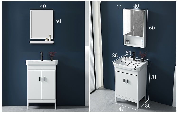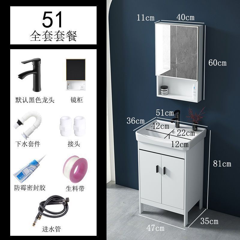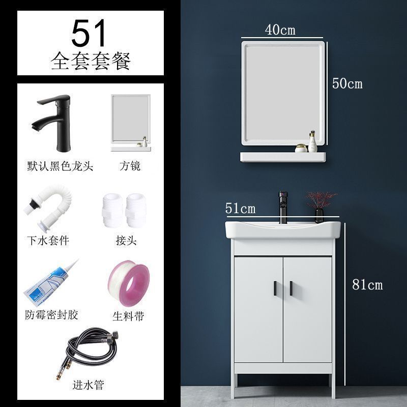 • 51CM 흰색 바닥 세라믹 세면대 캐비닛 - 전체 액세서리 세트 + 도어 미러 캐비닛