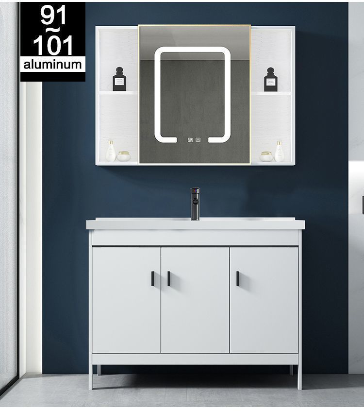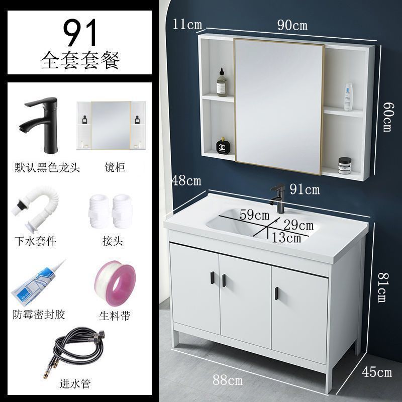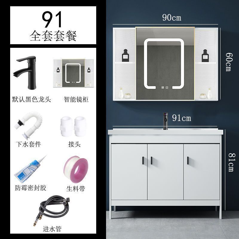 • 91CM 흰색 바닥 세라믹 세면대 캐비닛 - 전체 액세서리 세트 + 도어 미러 캐비닛