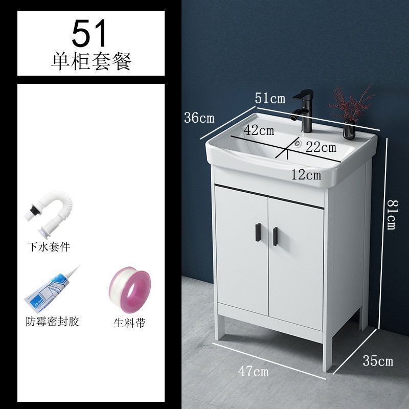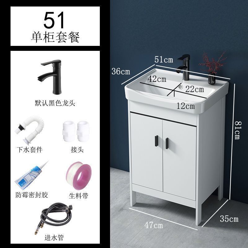 • 51CM 흰색 바닥 세라믹 세면대 캐비닛 - 전체 액세서리 세트(거울 없음)