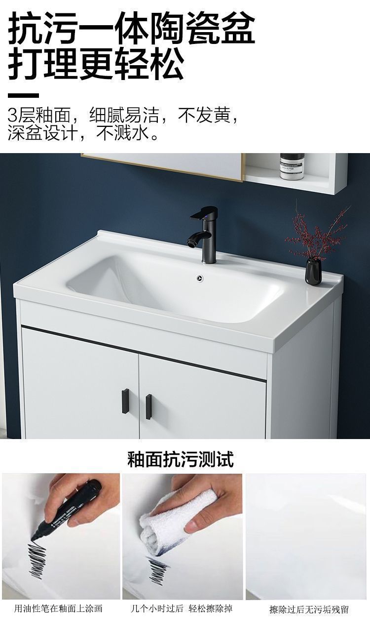 작은 아파트 바닥 유형 공간 알루미늄 브래킷 세면기 내각 조합 세라믹 세탁기 욕실 현대 욕실 캐비닛스토어 가기