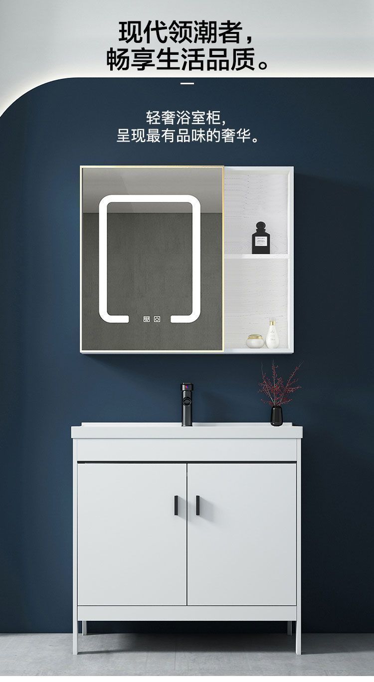 • 81CM 흰색 바닥 세라믹 세면대 캐비닛 - 액세서리 전체 세트 + 스마트 거울 캐비닛