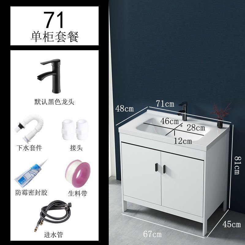 • 71CM 흰색 바닥 세라믹 세면대 캐비닛-배수 세트(거울 없음)