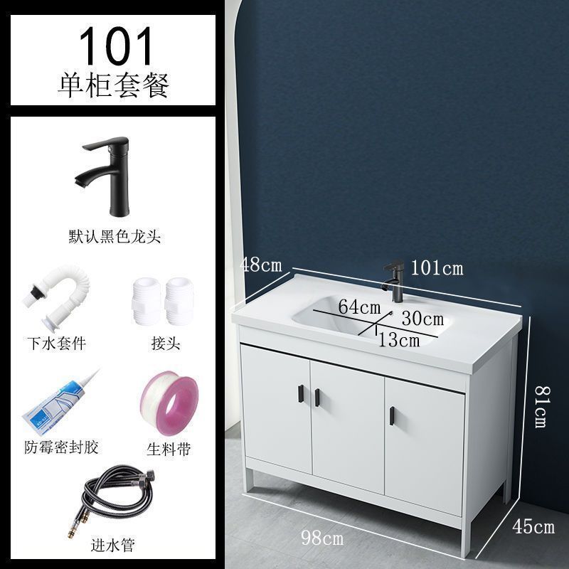 • 101CM 흰색 바닥 세라믹 세면대 캐비닛 - 배수 세트 (거울 없음)