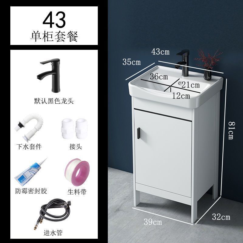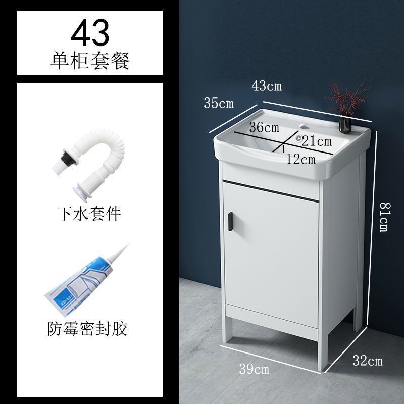• 43CM 흰색 바닥 세라믹 세면대 캐비닛 - 배수 세트 (거울 없음)