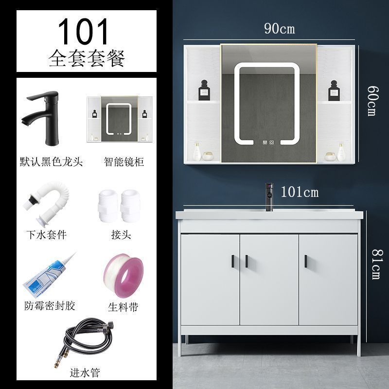 • 101CM 흰색 바닥 세라믹 세면대 캐비닛 - 액세서리 전체 세트 + 스마트 거울 캐비닛