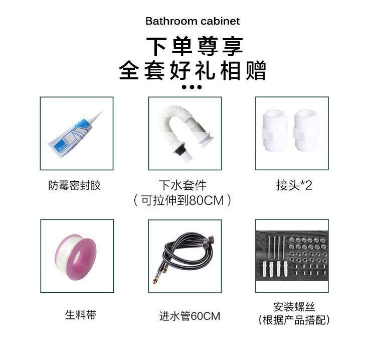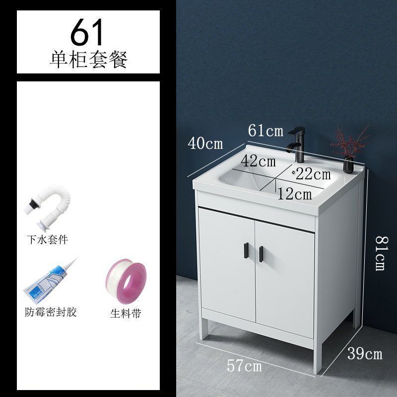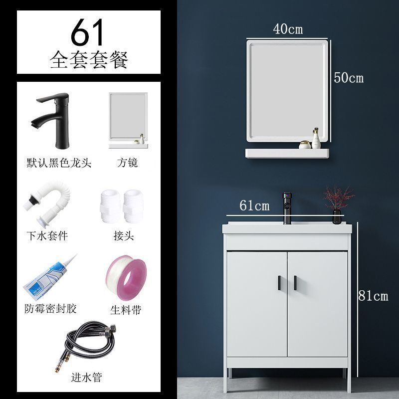 • 60x40CM 흰색 바닥 세라믹 세면대 캐비닛-배수 세트(거울 없음)
