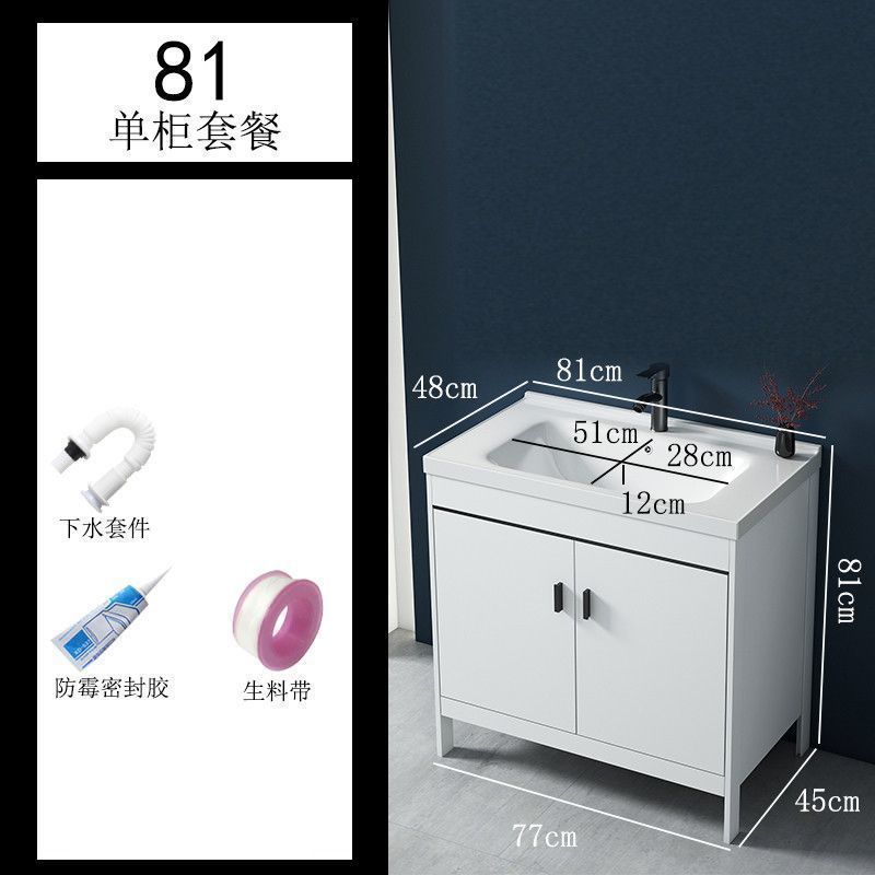 • 81CM 흰색 바닥 세라믹 세면대 캐비닛 - 배수 세트 (거울 없음)