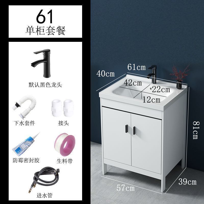 • 60x40CM 흰색 바닥 세라믹 세면대 캐비닛 - 전체 액세서리 세트(거울 없음)