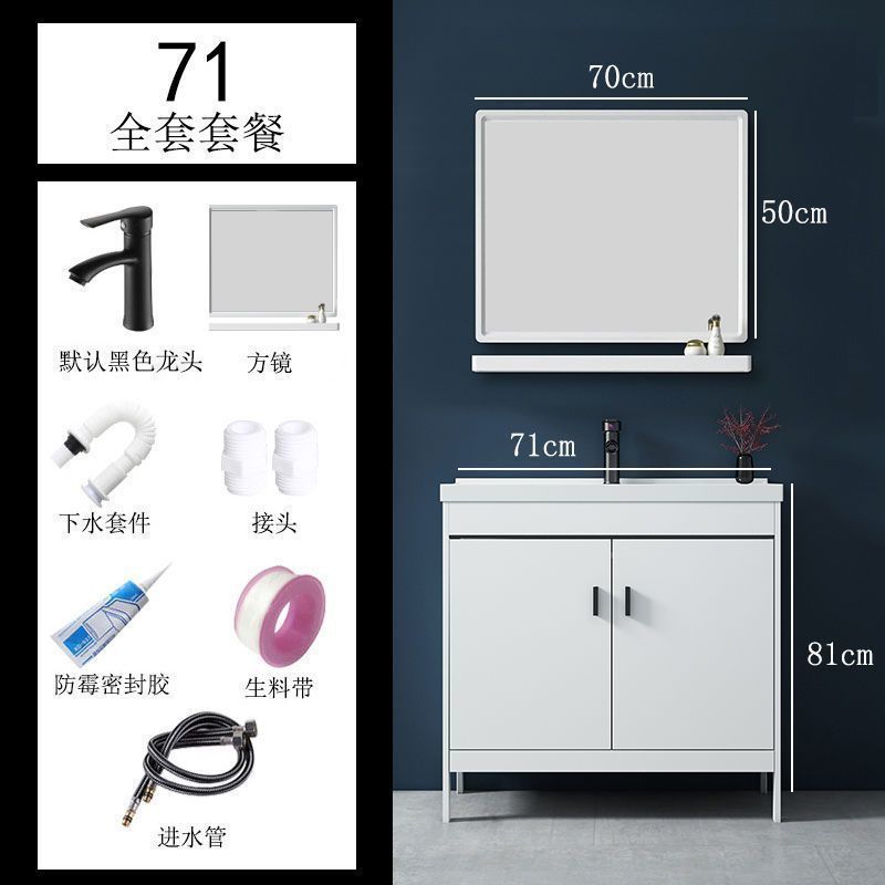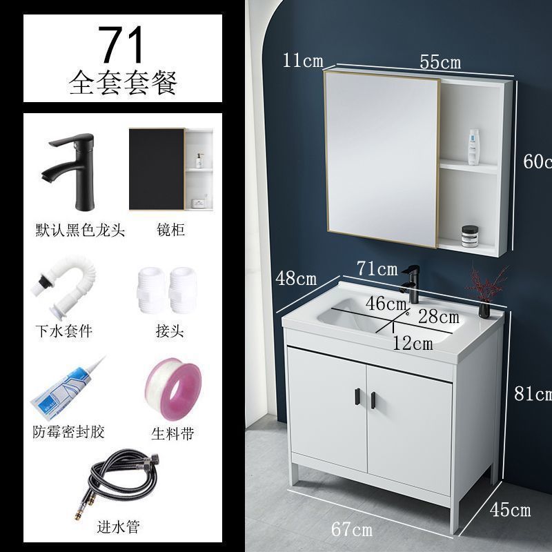 • 71CM 흰색 바닥 세라믹 세면대 캐비닛 - 전체 액세서리 세트 + 도어 미러 캐비닛