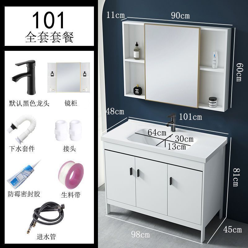 • 101CM 흰색 바닥 세라믹 세면대 캐비닛 - 전체 액세서리 세트 + 도어 미러 캐비닛