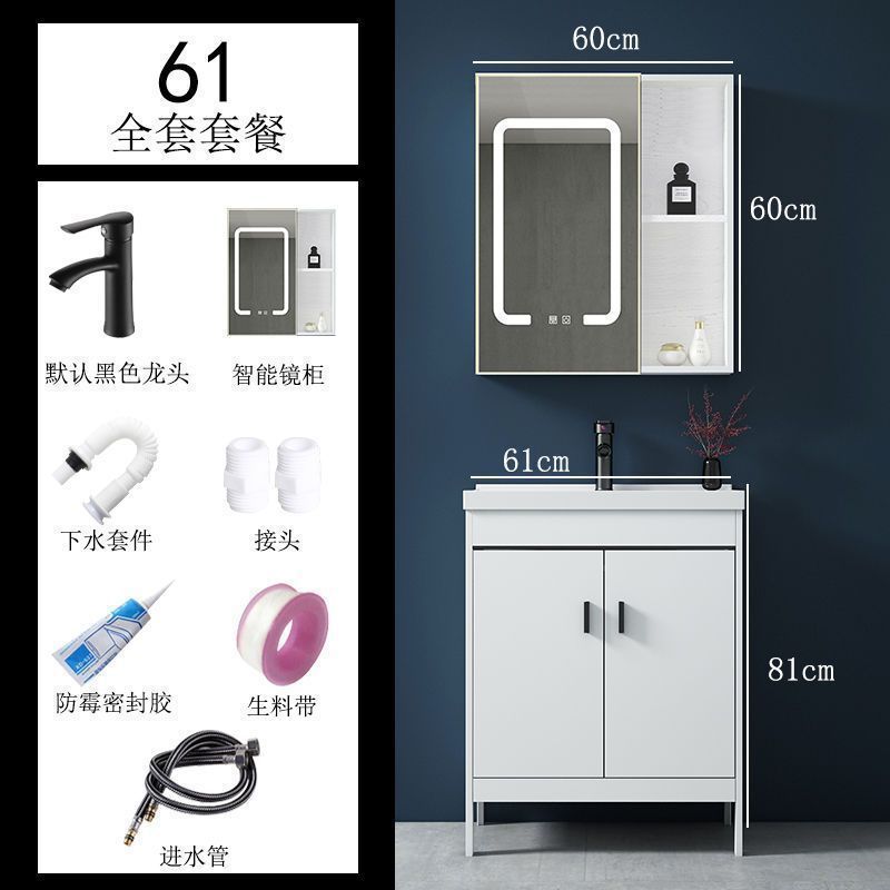• 60x40CM 흰색 바닥 세라믹 세면대 캐비닛 - 전체 액세서리 세트 + 스마트 거울 캐비닛