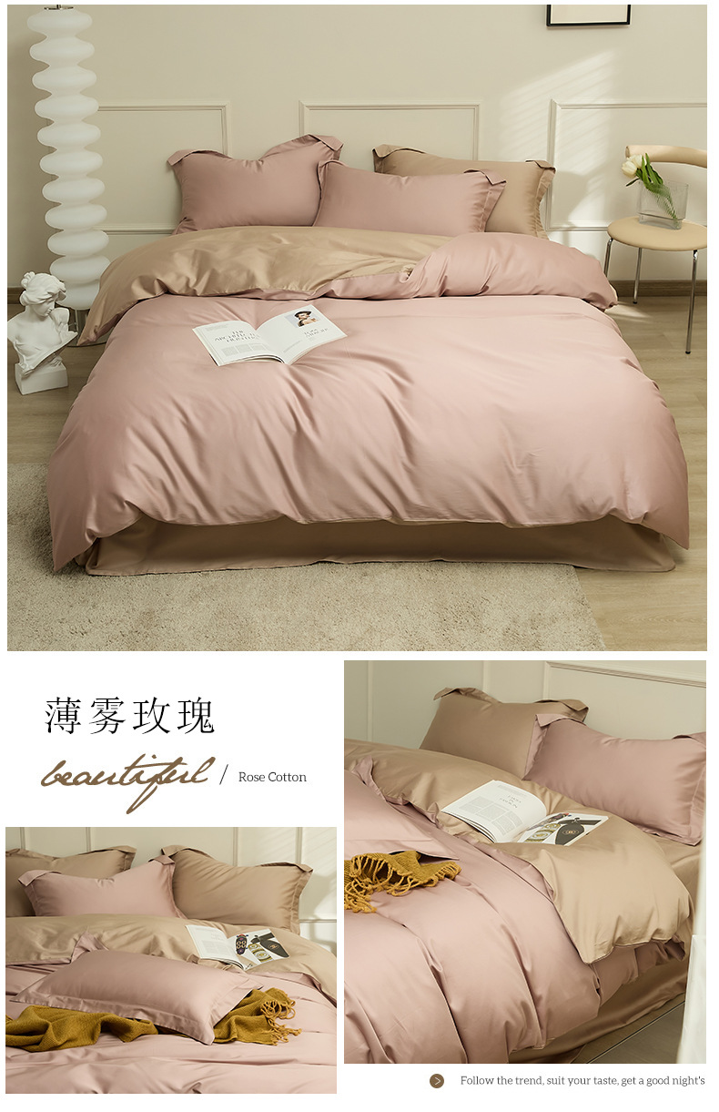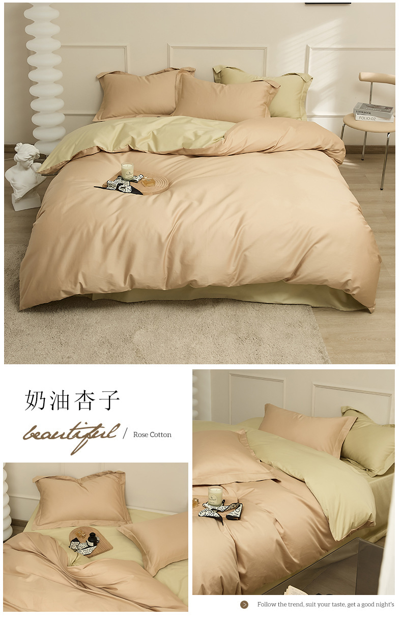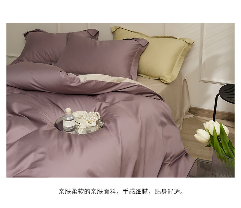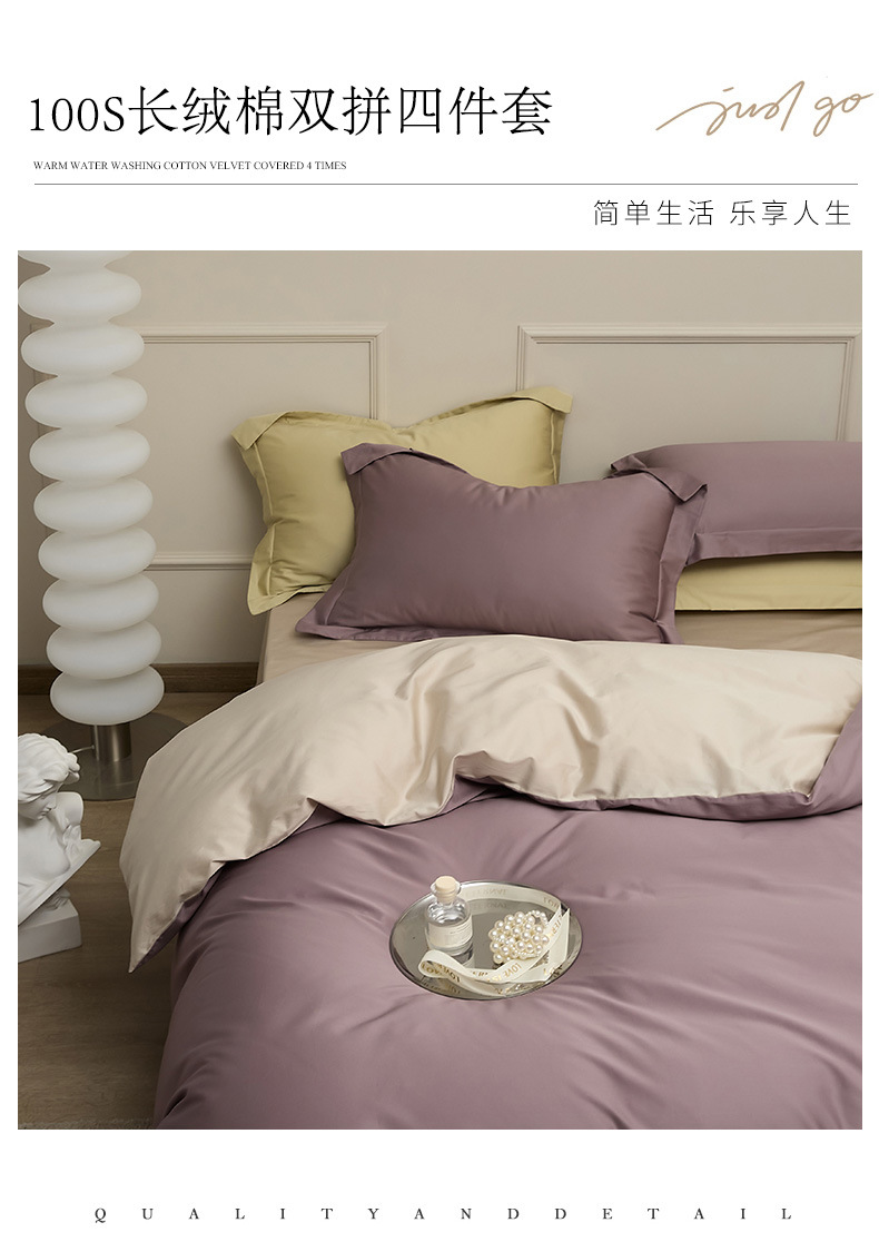 ✅100 신강 긴 스테이플 코튼 단색 더블 주문 4 피스 침대 시트 모자 100s 코튼 4 피스 세트스토어 가기