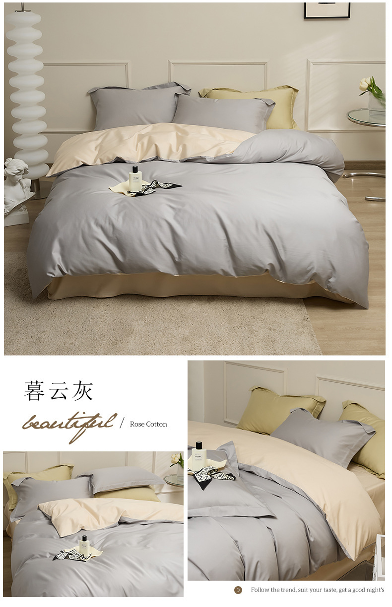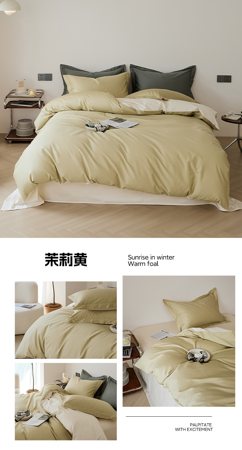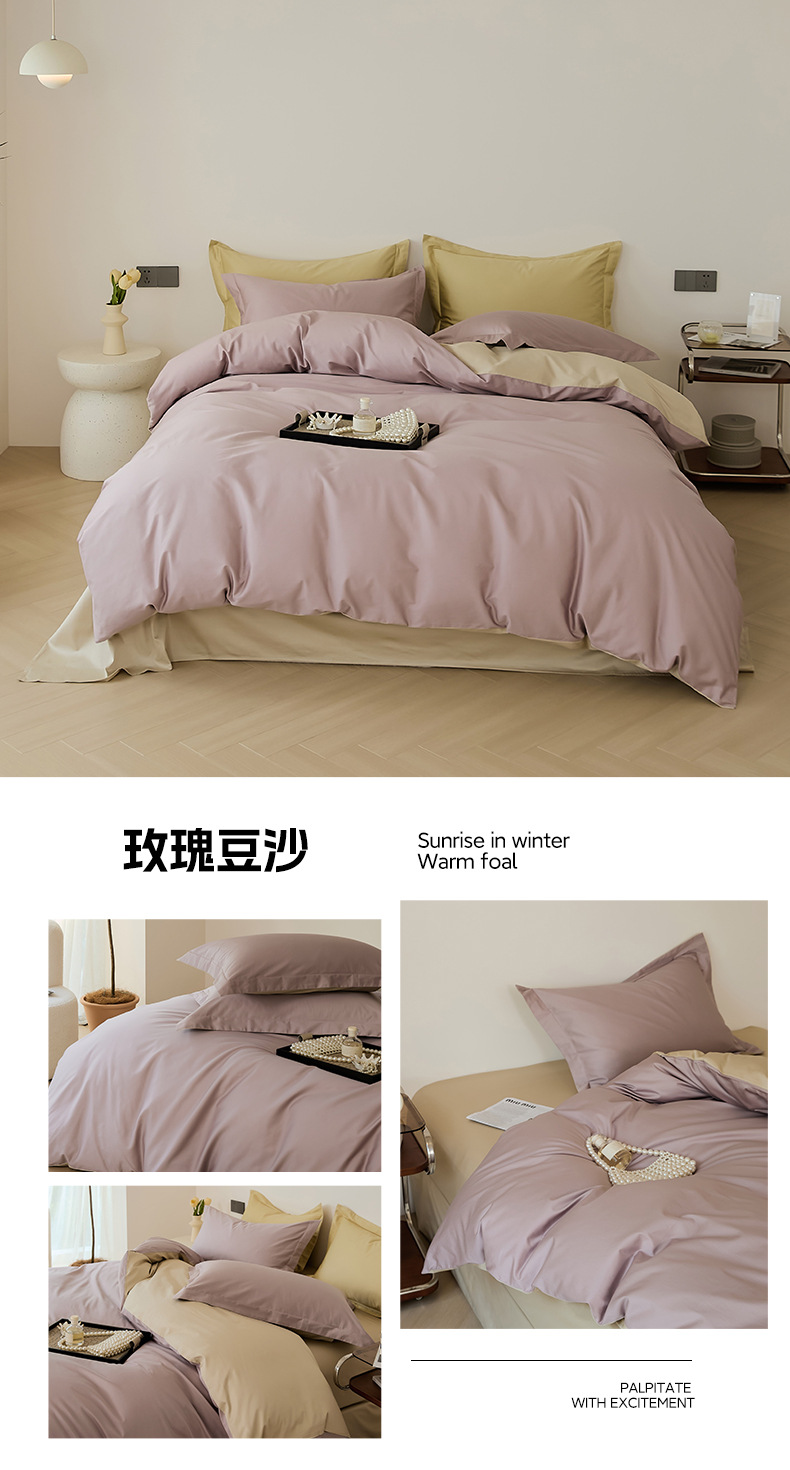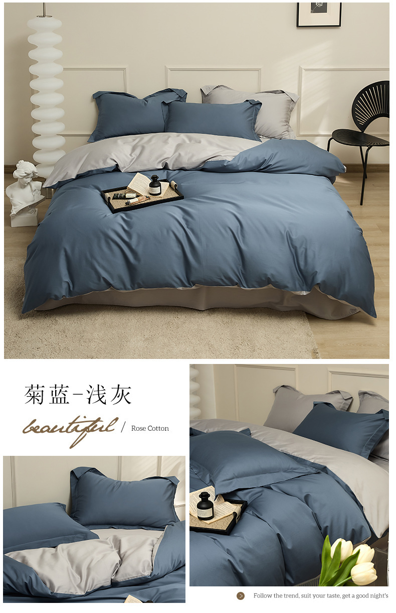 ✅100 신강 긴 스테이플 코튼 단색 더블 주문 4 피스 침대 시트 모자 100s 코튼 4 피스 세트스토어 가기