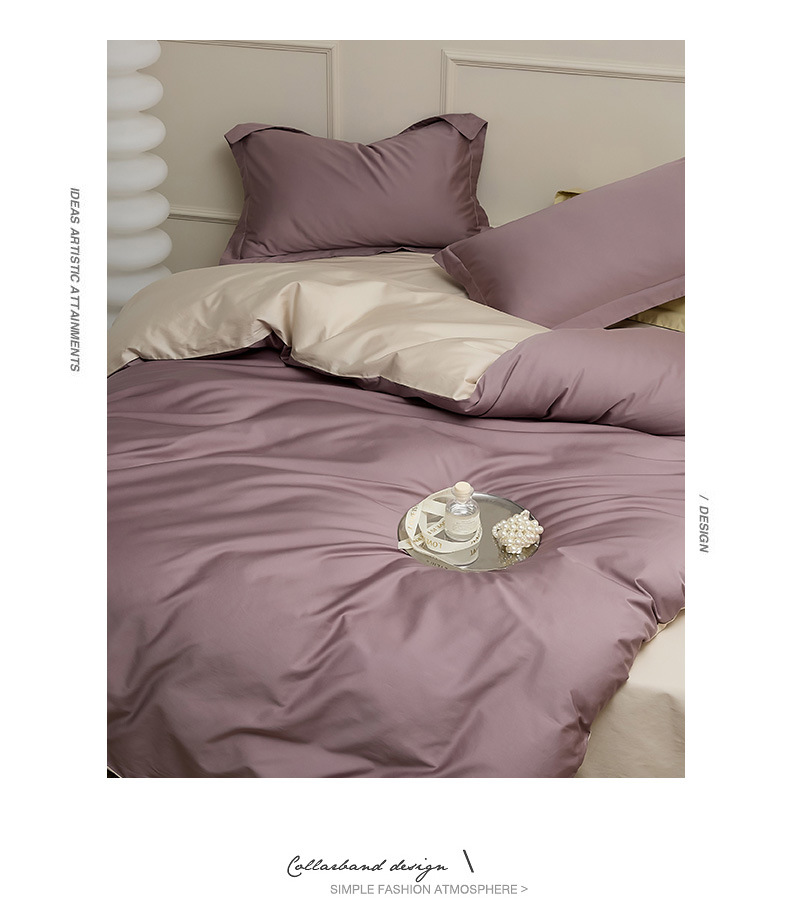 ✅100 신강 긴 스테이플 코튼 단색 더블 주문 4 피스 침대 시트 모자 100s 코튼 4 피스 세트